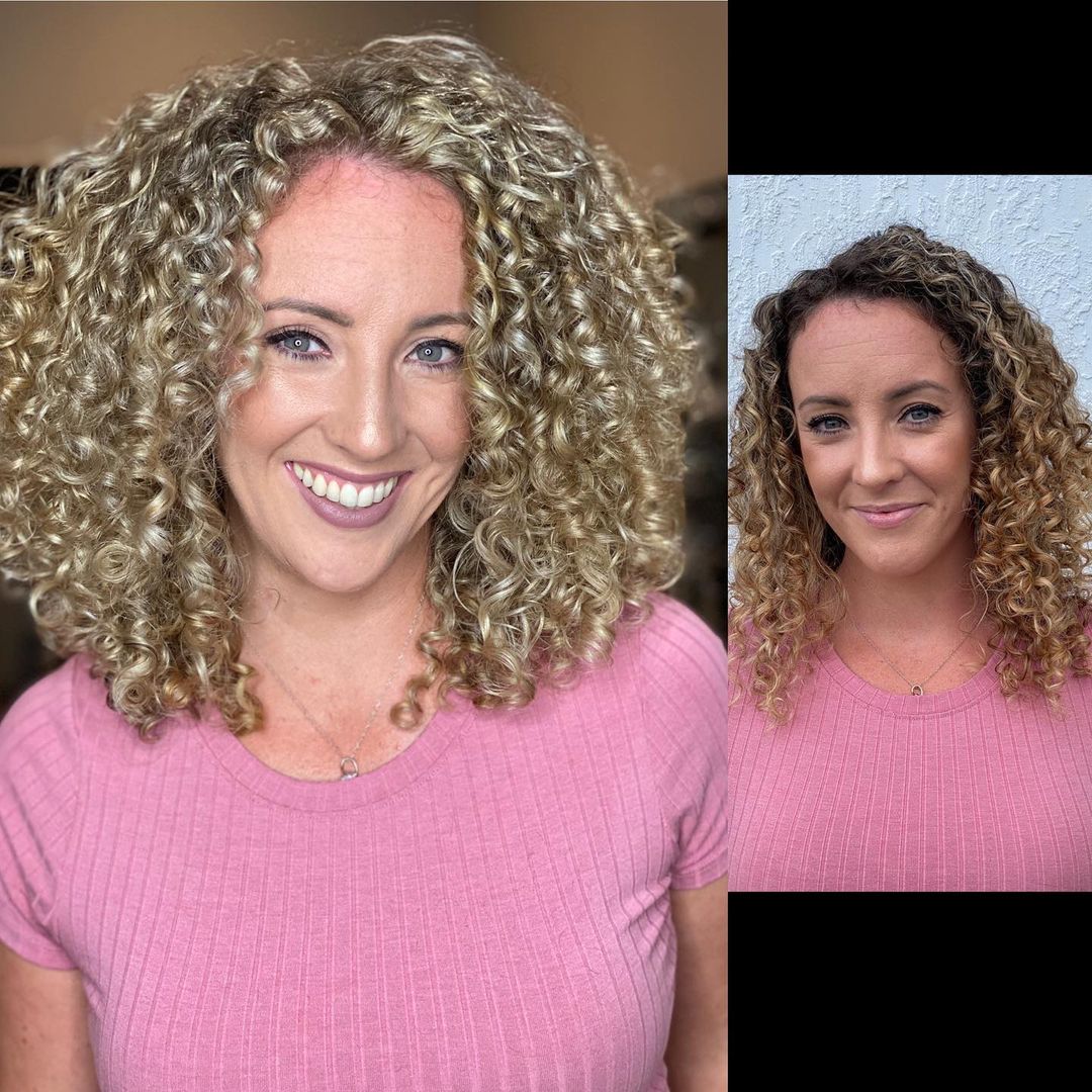 One of the best tips I can provide to achieve beautiful blonde curls is to pay attention to your hair. Determine whether your hair needs moisture or protein. Ask yourself when you last clarified it. Remember to only use purple shampoo once a week. Consult your stylist for valuable tips on home hair maintenance for longer-lasting results!