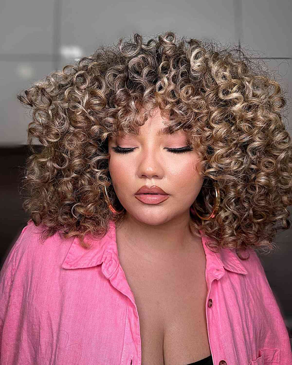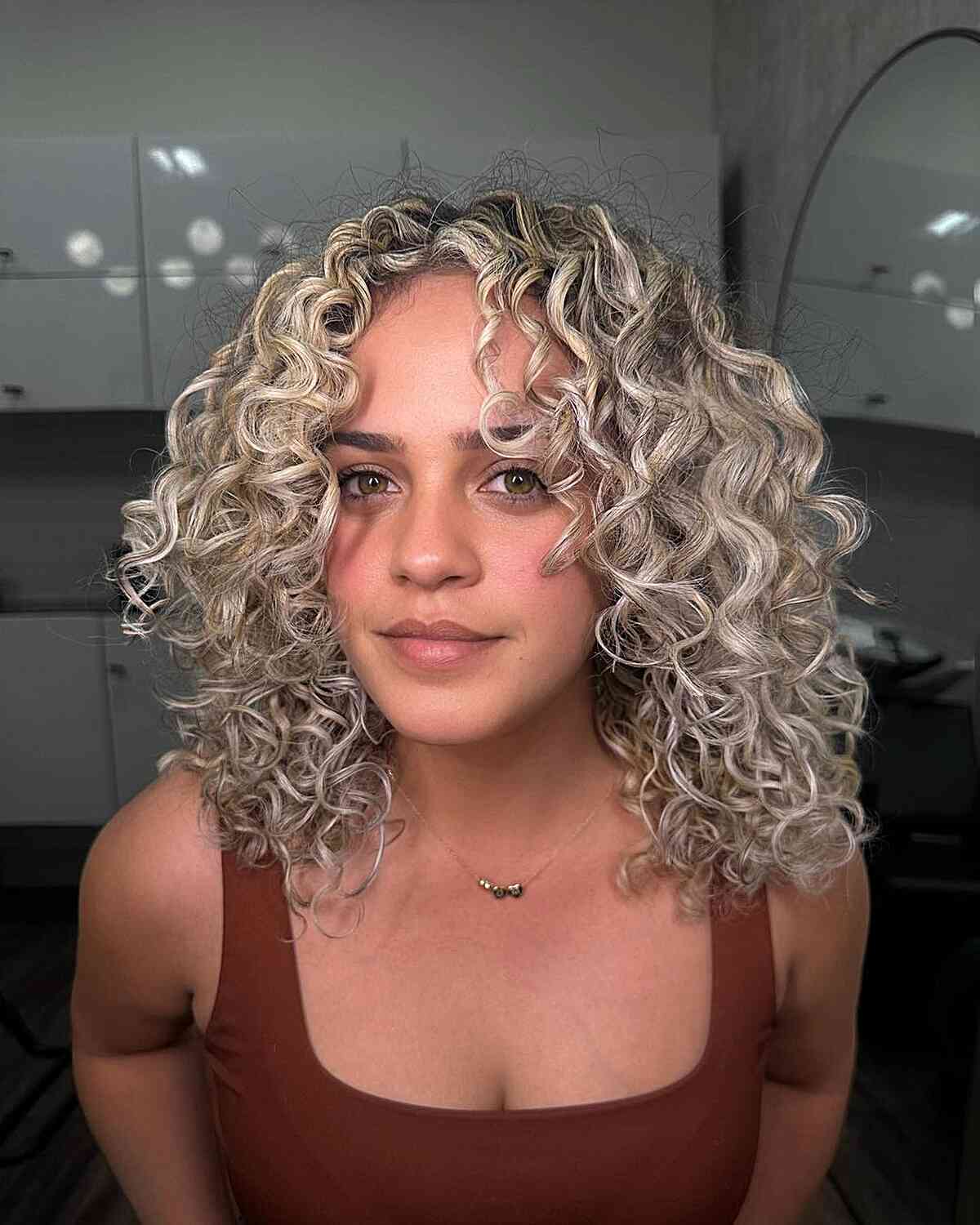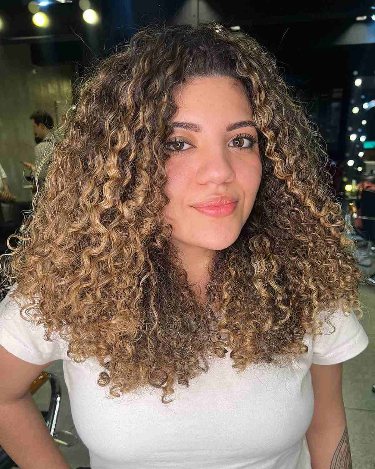 Revitalize your tresses with defined curls. If you aim to infuse some depth and dimension into your hairstyle, adding blonde highlights is an excellent option. When dyeing your hair, ensure to take precautionary measures to minimize damage. Bleaching your curly hair can be harsh, so remember to use moisturizing products and schedule regular trims to avoid split ends.
