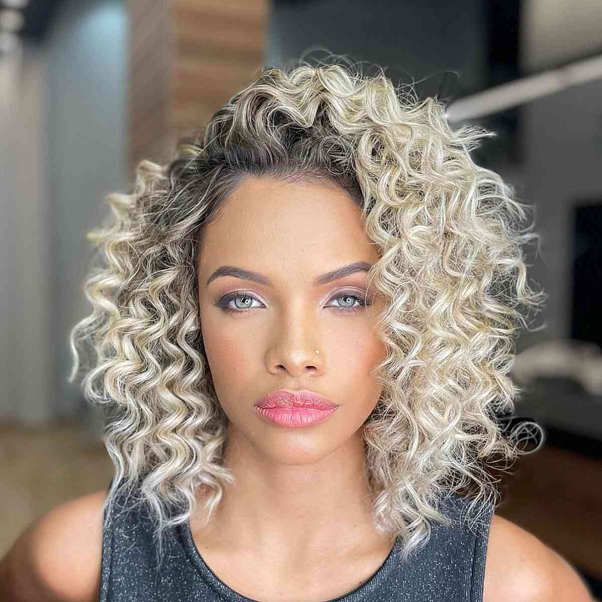 Maintain your shoulder-length platinum blonde hair’s charm and creativity with exquisite tight curls divided in the center. Come on now, my curly-haired queens, the ocean is beckoning!