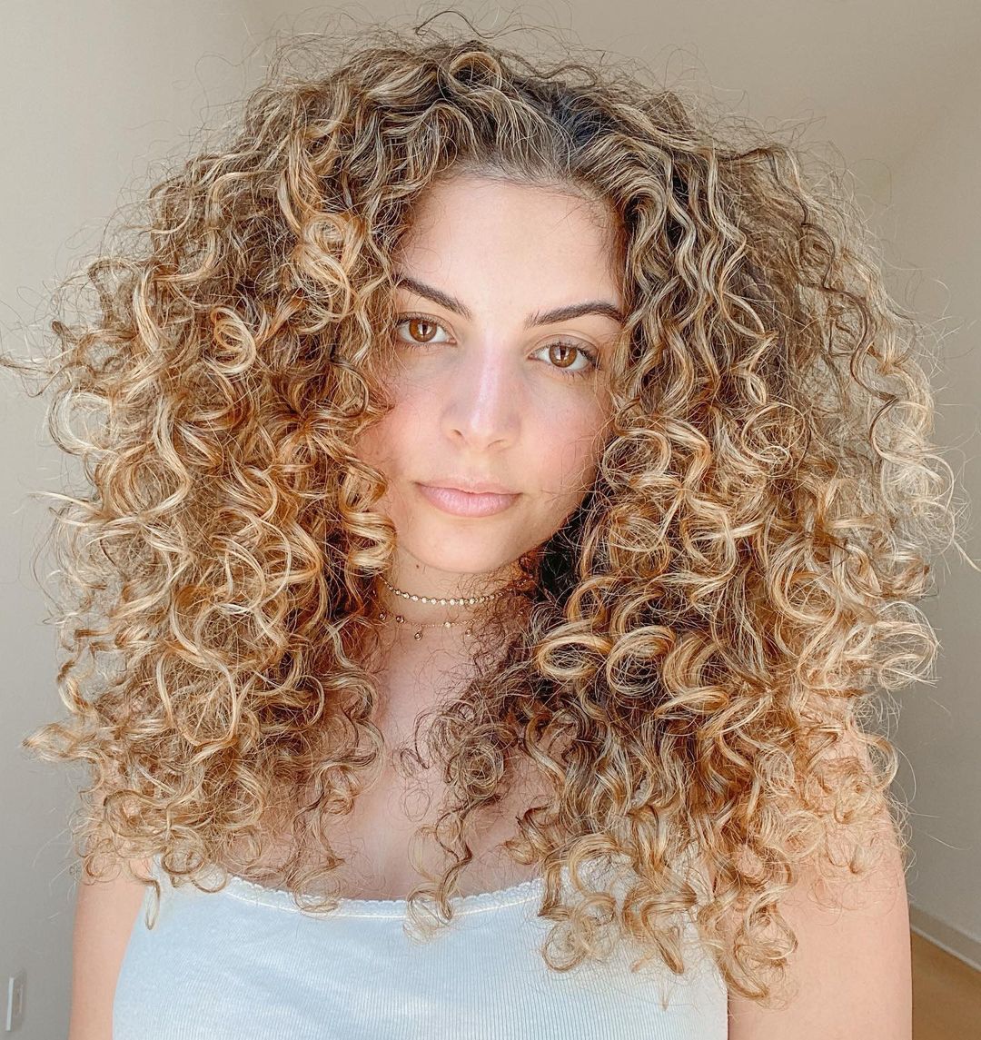 Curly hair adorned with golden highlights that bring the essence of the ocean! Ideal for anyone who loves the beach, these naturally tousled curls create the timeless waves coveted by many influencers.
