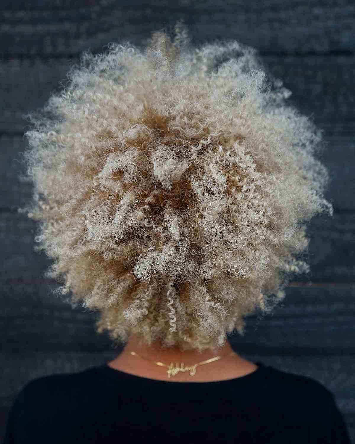 Maintaining vibrant blonde textured curls is always fashionable. If your natural hair color is darker, it may require a few sessions to reach a bright blonde shade. Regular deep conditioning and haircuts are essential for keeping your hair in great condition. These practices will also help eliminate split ends. If possible, tone your hair every four weeks to prevent brassy shades from appearing.