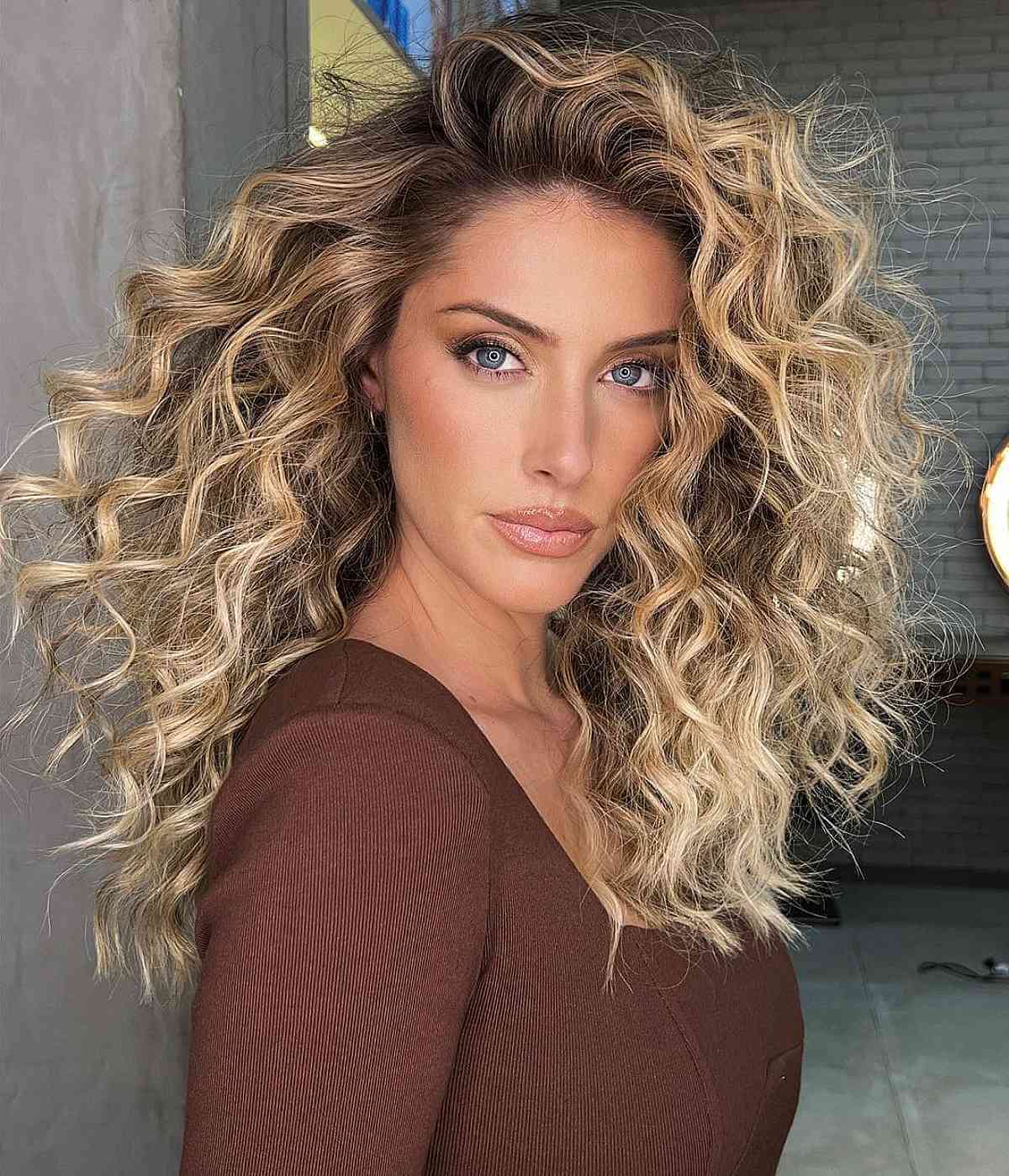 Curly hair looks stunning with a balayage of blonde tones. If you prefer a low-maintenance style, request a rooted appearance or a root smudge. This technique creates the effect that your hair has grown out slightly, making it the simplest style to maintain. Your stylist should provide you with product suggestions tailored to your specific color.