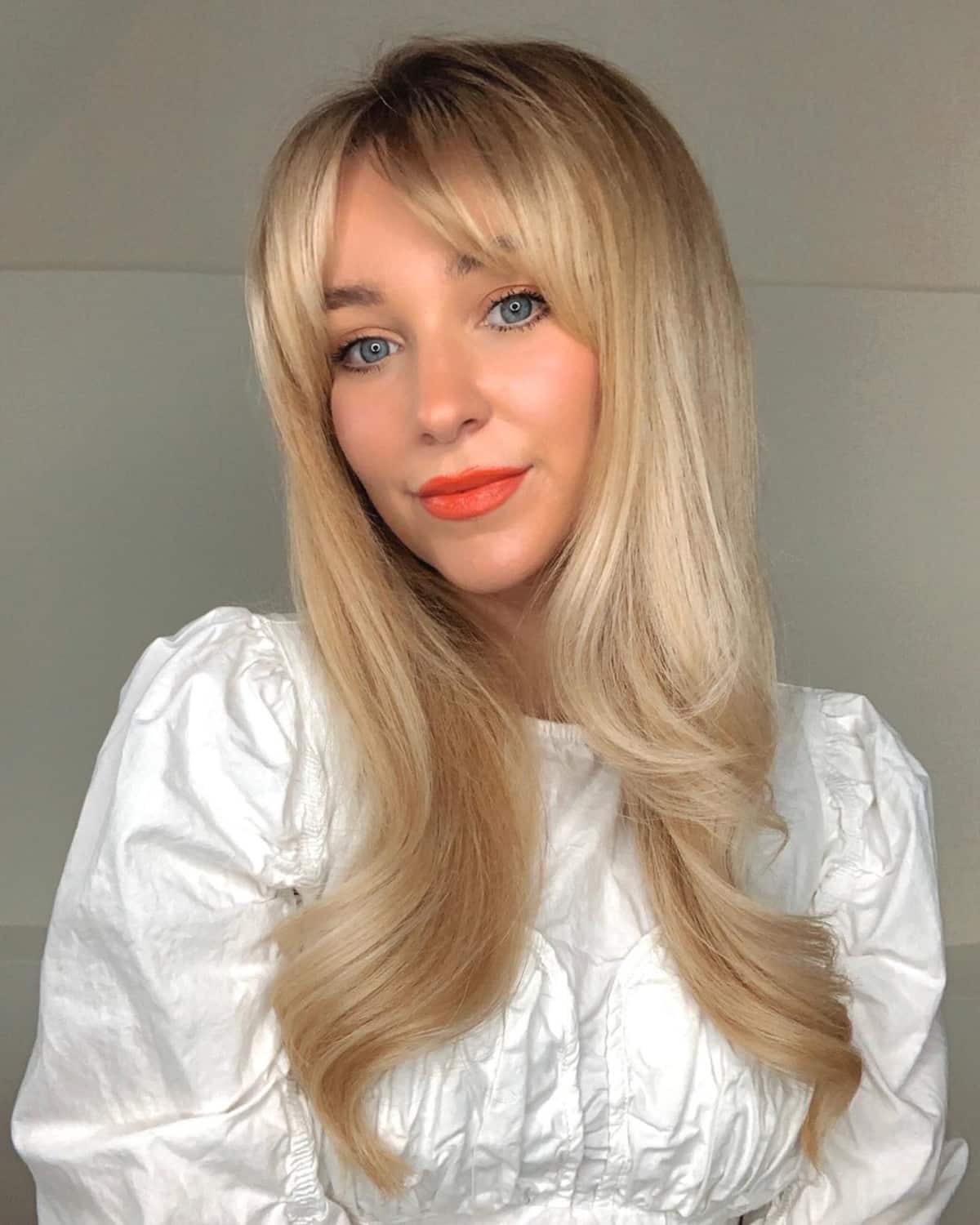 Explore a stylish long front layered cut with wispy bangs to enhance shape, movement, and volume to your hair. Layers can contribute to a fuller and thicker appearance, elevating your overall look. When blow-drying and styling the fringe, opt for low heat to ensure your style sets effectively, and blow-dry from side to side.