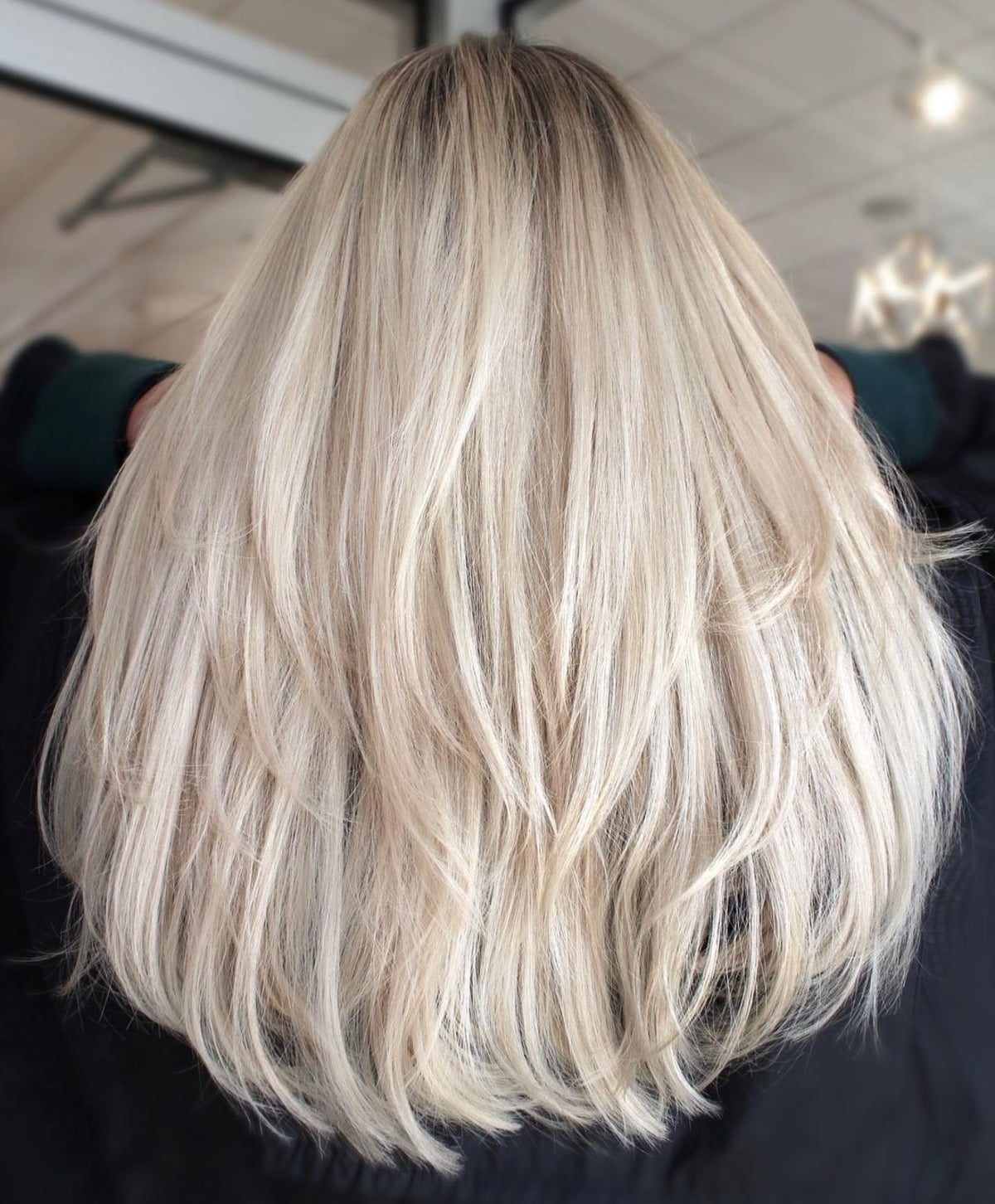 #34: Mid Back-Length Platinum Blonde Tresses with a Shadow Root