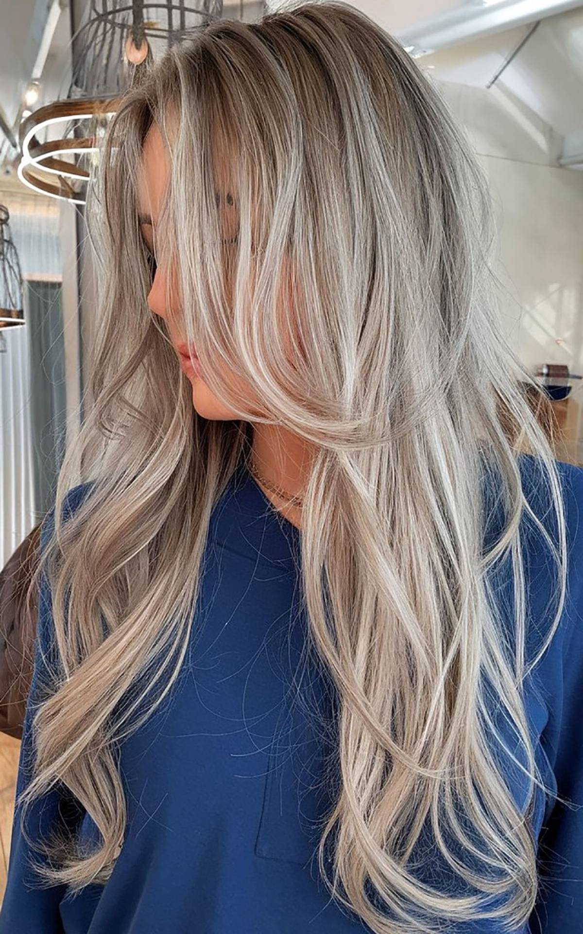 #9: Elegant Long Blonde Balayage with Textured Ends