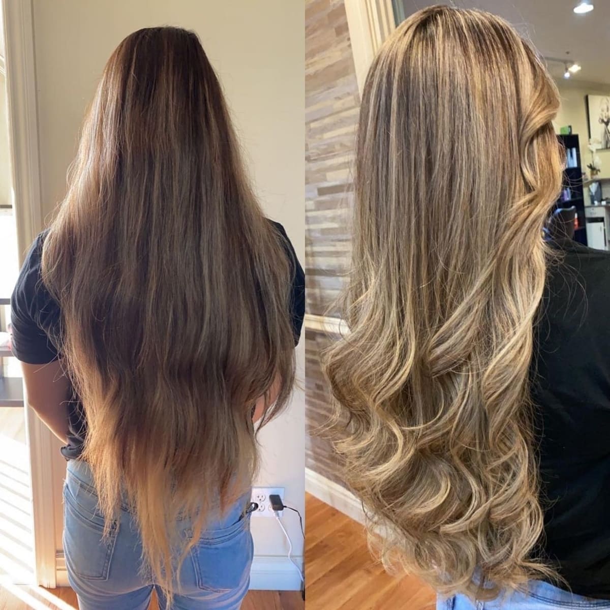 Elevate your look with blonde babylights and curled ends on long fine hair for added depth. Fine hair truly benefits from the delicate strands of babylights. This technique of micro-lighting contributes to a radiant look while maintaining a natural feel, allowing your base color to shine through. Complete your transformation by curling your ends for an extra bounce and volume.