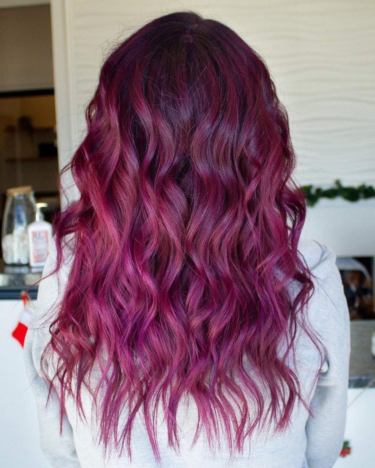 #25: Vibrant Dark Magenta Color Melt on Long, Curly Hair