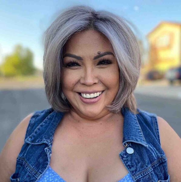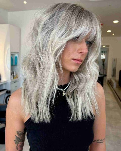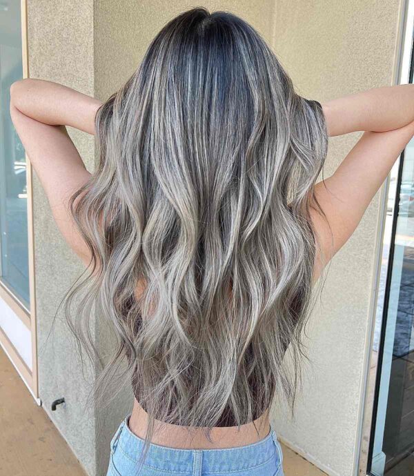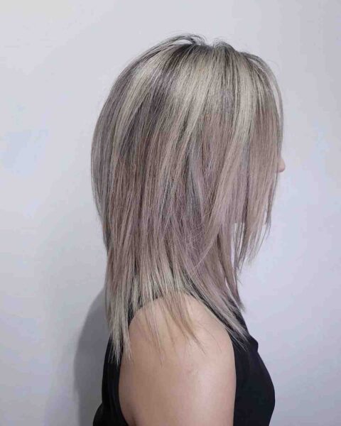 Smoky white blonde on v-cut layered locks is a stunning combination. But what color is ash? It has a muted, dull gray tone. This eye-catching hue is the perfect inspiration to take to the salon!