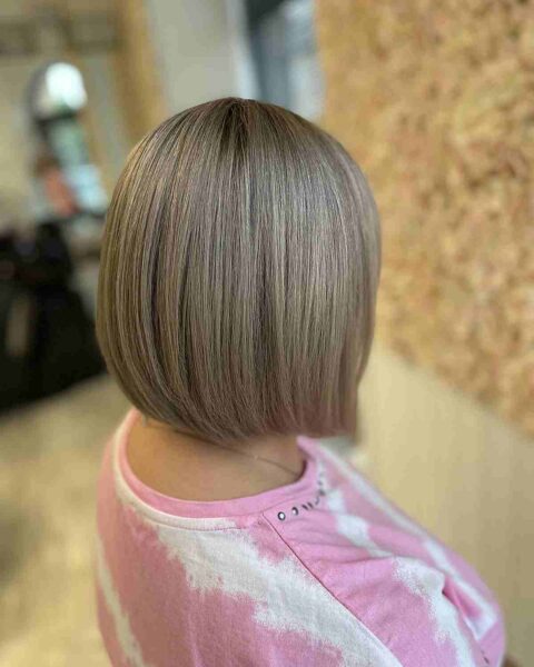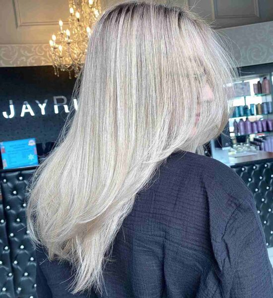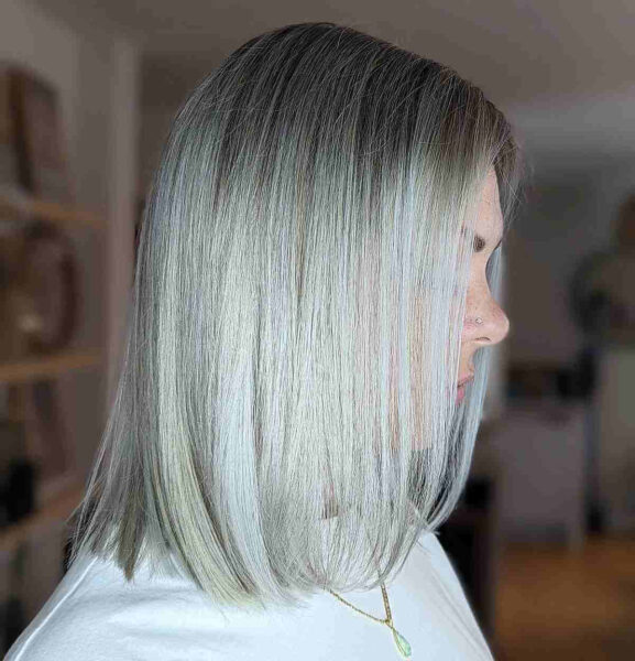 Chic and incredibly stylish – this stunning light ash blonde hue is showcasing a remarkable effect on this sleek mid-length cut. It’s an ideal choice for those with cool and fair skin tones, enhancing the pink undertones beautifully.