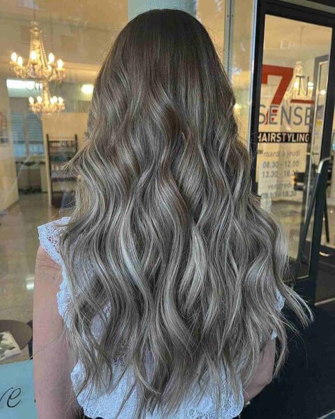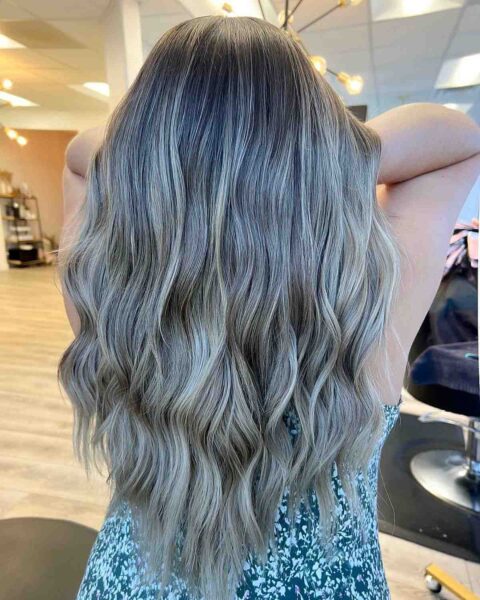 The beauty of this blonde-gray hair is in its smooth transition into a silvery hue, which can be quite challenging to achieve. This technique is also my preferred method for creating waves, as it adds volume and body to your hair without resulting in overly tight curls!