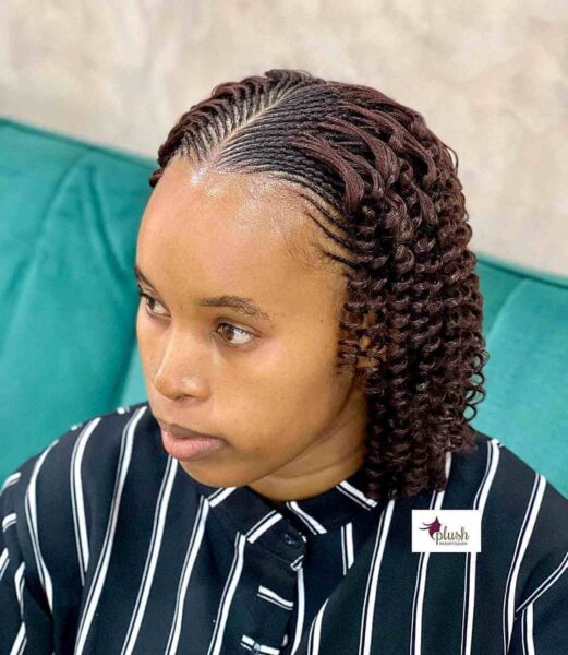 Inquire about blending cornrows and passion twists if you’re looking for a hairstyle that isn’t completely braided. Passion twists make a lovely addition to the tips of cornrows.