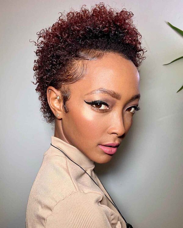 The teeny weeny afro for natural hair is a straightforward and fashionable way to showcase your texture. Confident African-American women will embrace stunning short haircuts with unique designs.