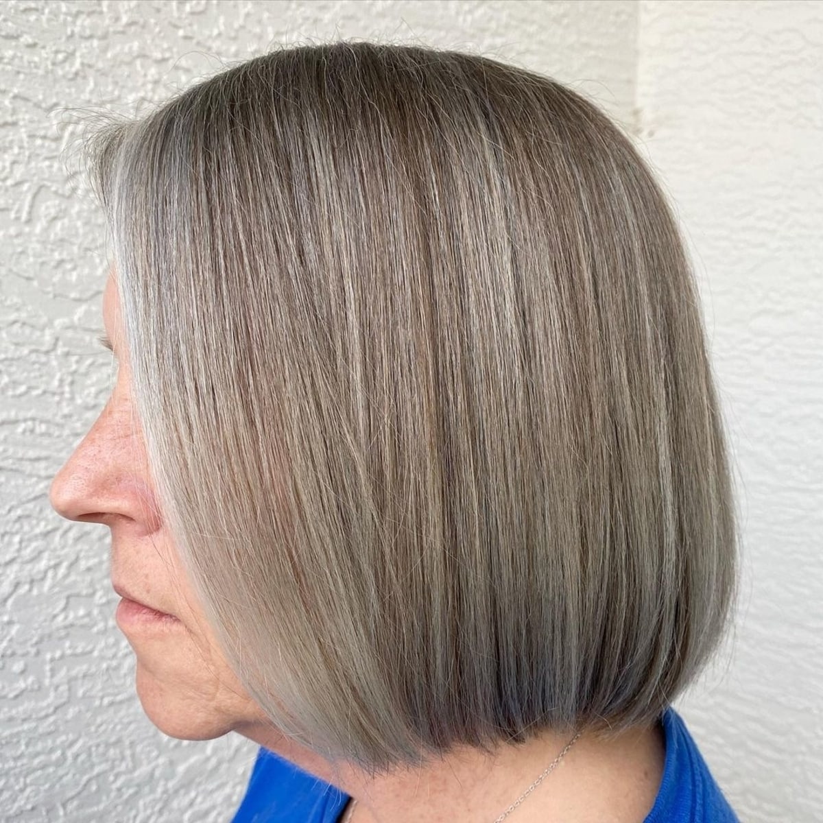 A shoulder-length bob for silver, fine hair exudes elegance. Similar to the bob cut, a medium straight haircut is a classic style that enhances your overall appearance.