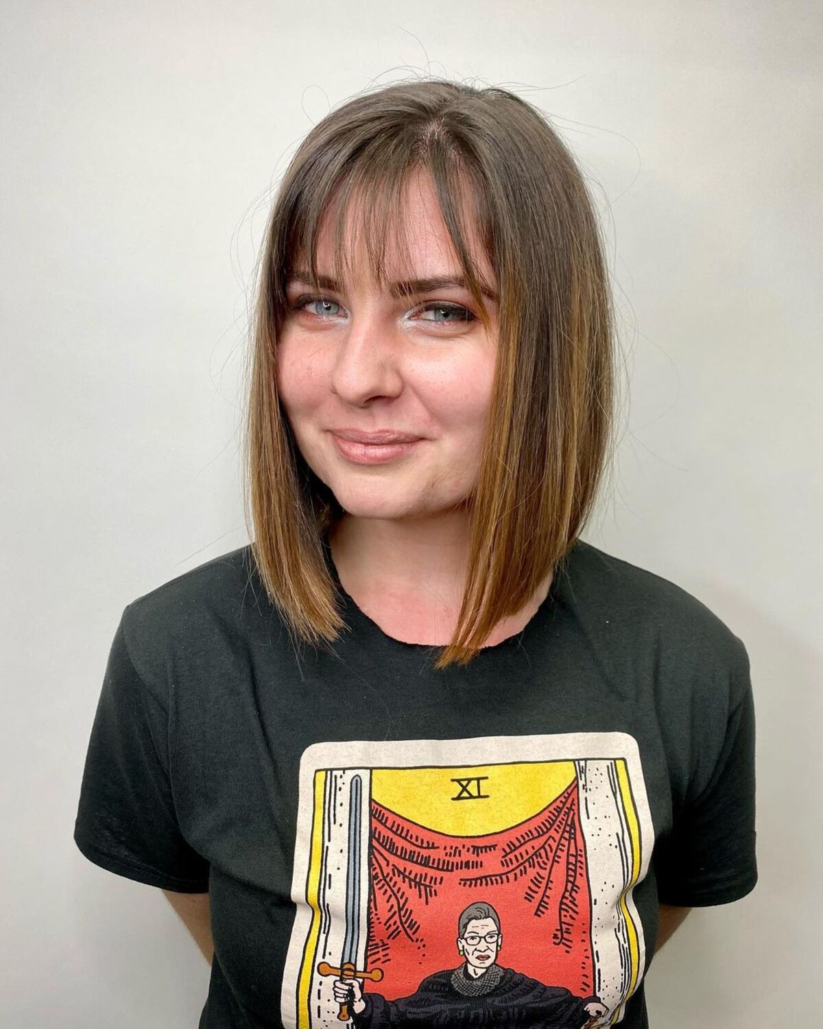 Consider a blunt bob that’s sharp and refined, like this one created by hairstylist Caylee.