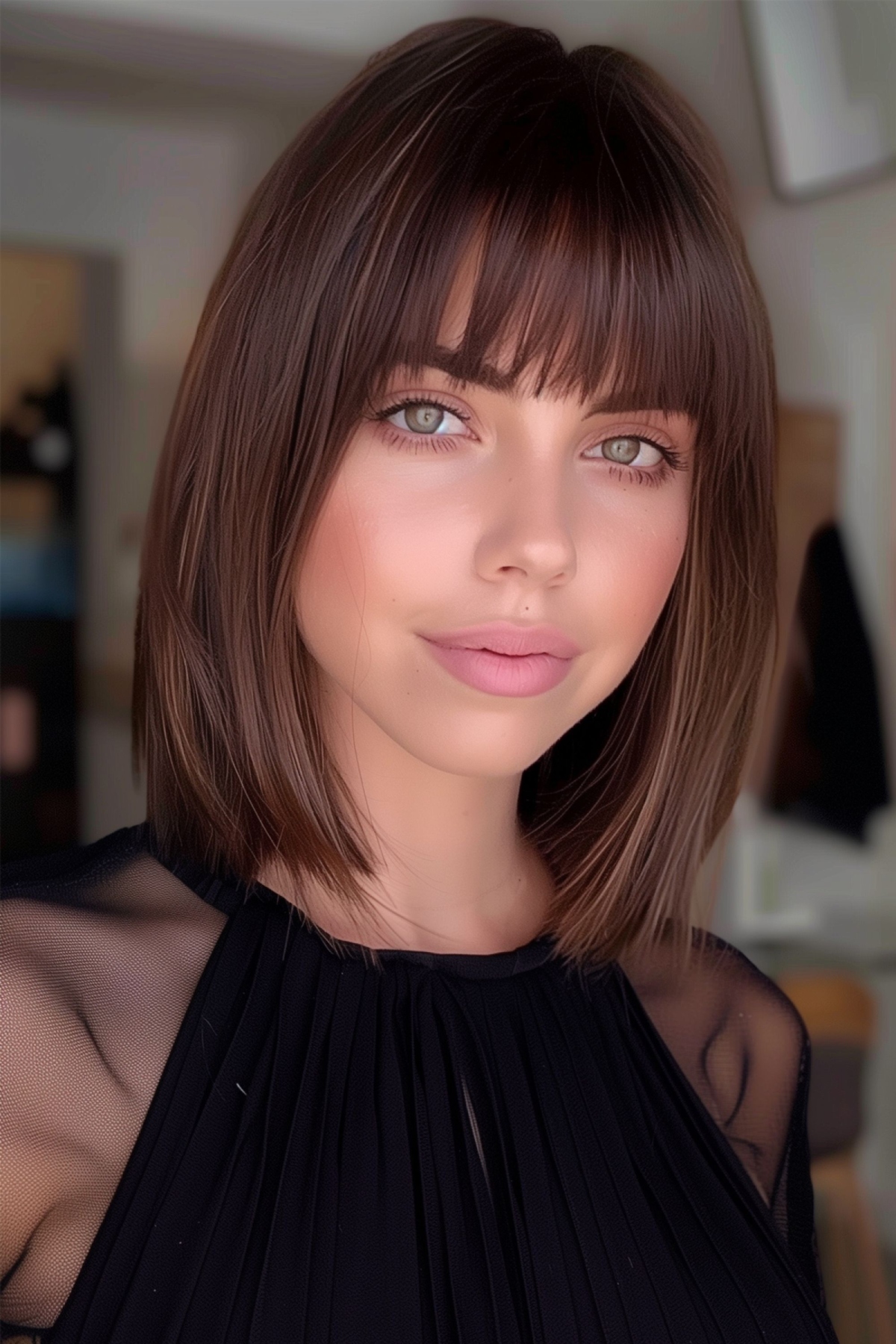 A blunt bob with bangs has a polished look that suits naturally straight hair perfectly. Consult your stylist about blunt lobs if you’re in search of a chic style.