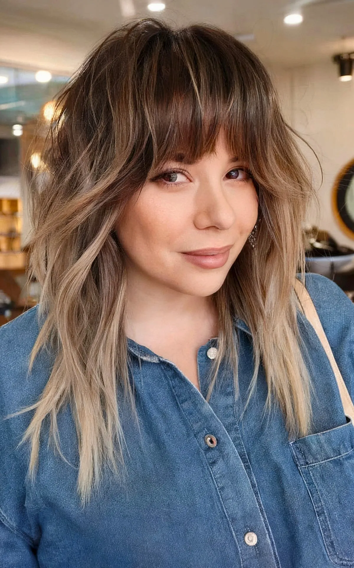 Chic Mid-Length Ombre Shag with Bangs