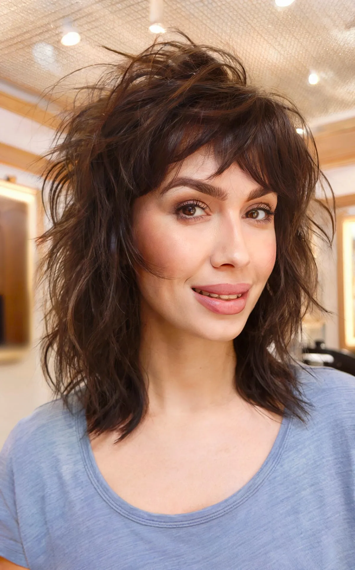 Choppy Bangs on a Medium Shag Haircut