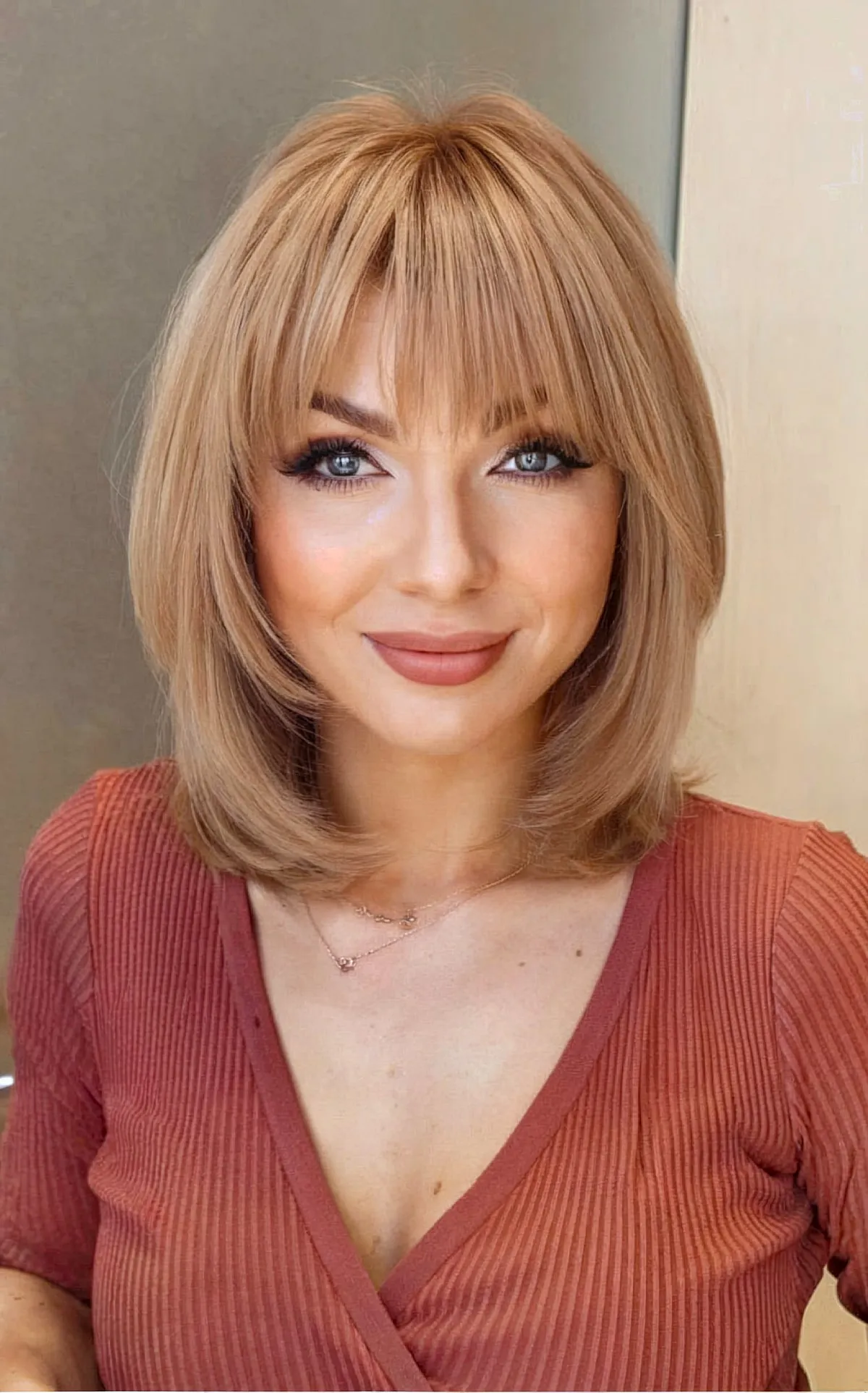 Textured Long Bob with Curtain Bangs