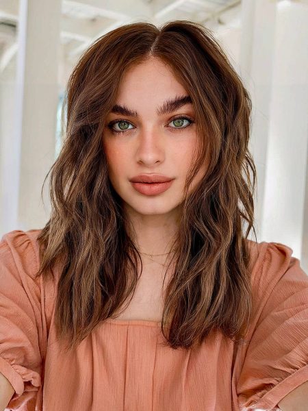Opt for choppy mid-length layers to achieve an effortlessly chic style. This cut is ideal for those who favor a relaxed, messy look. It requires minimal effort in styling. Add a hint of texture, and you’re set to impress!
