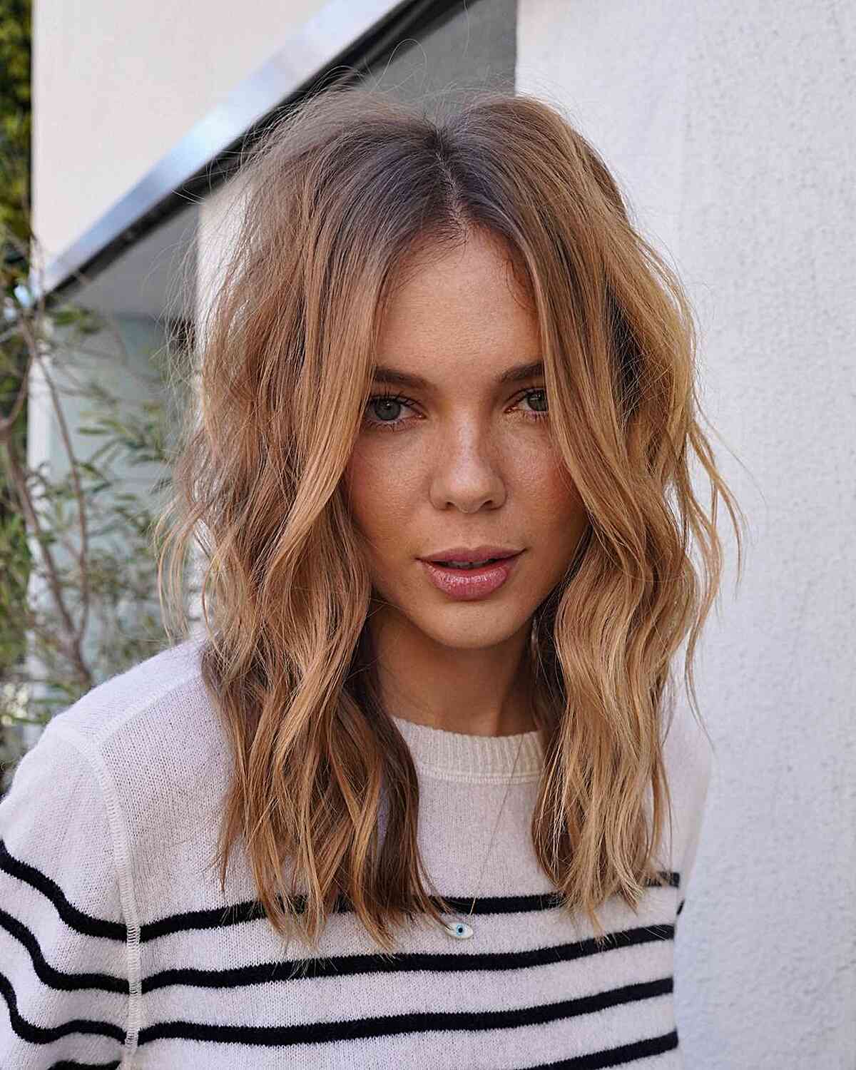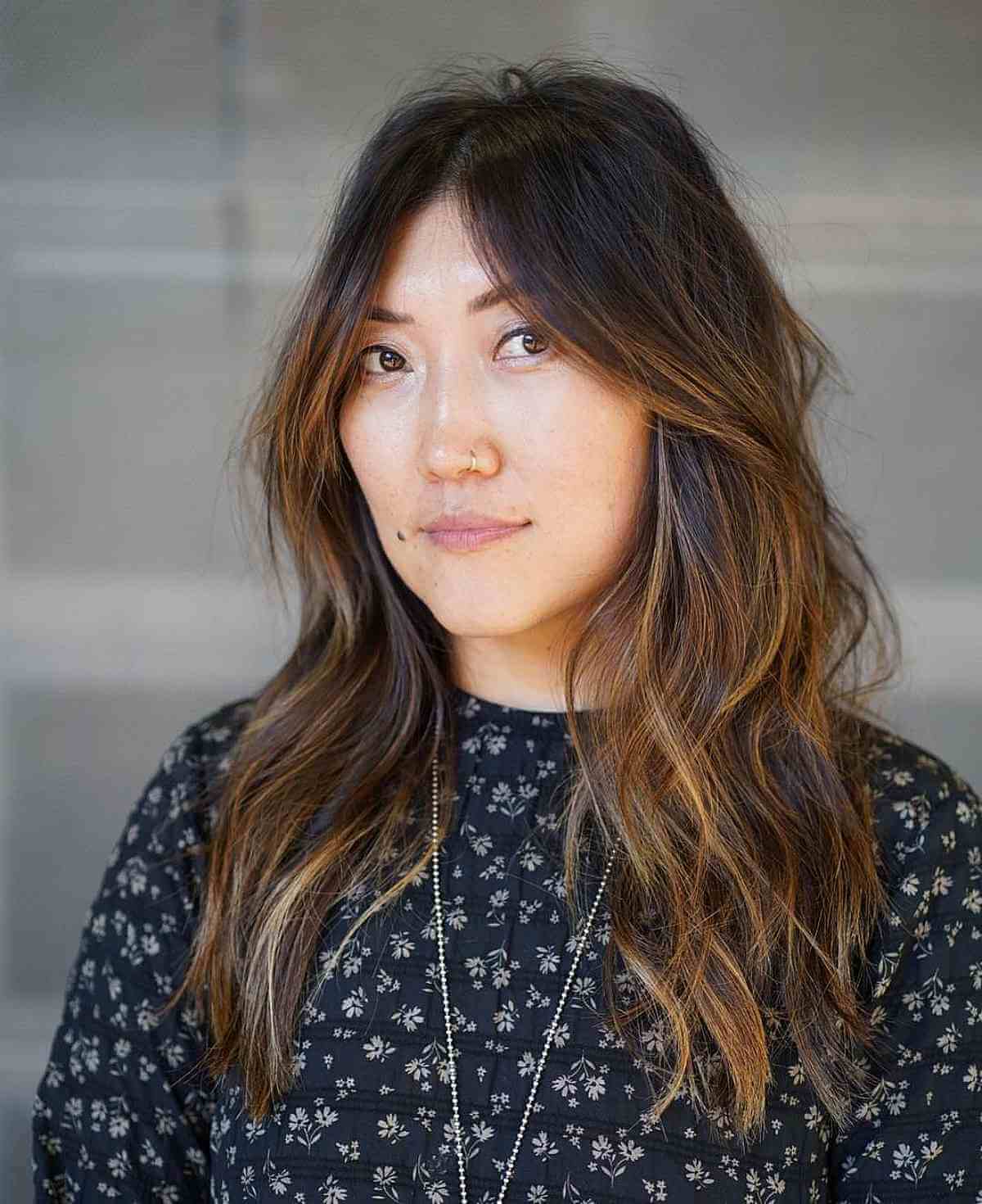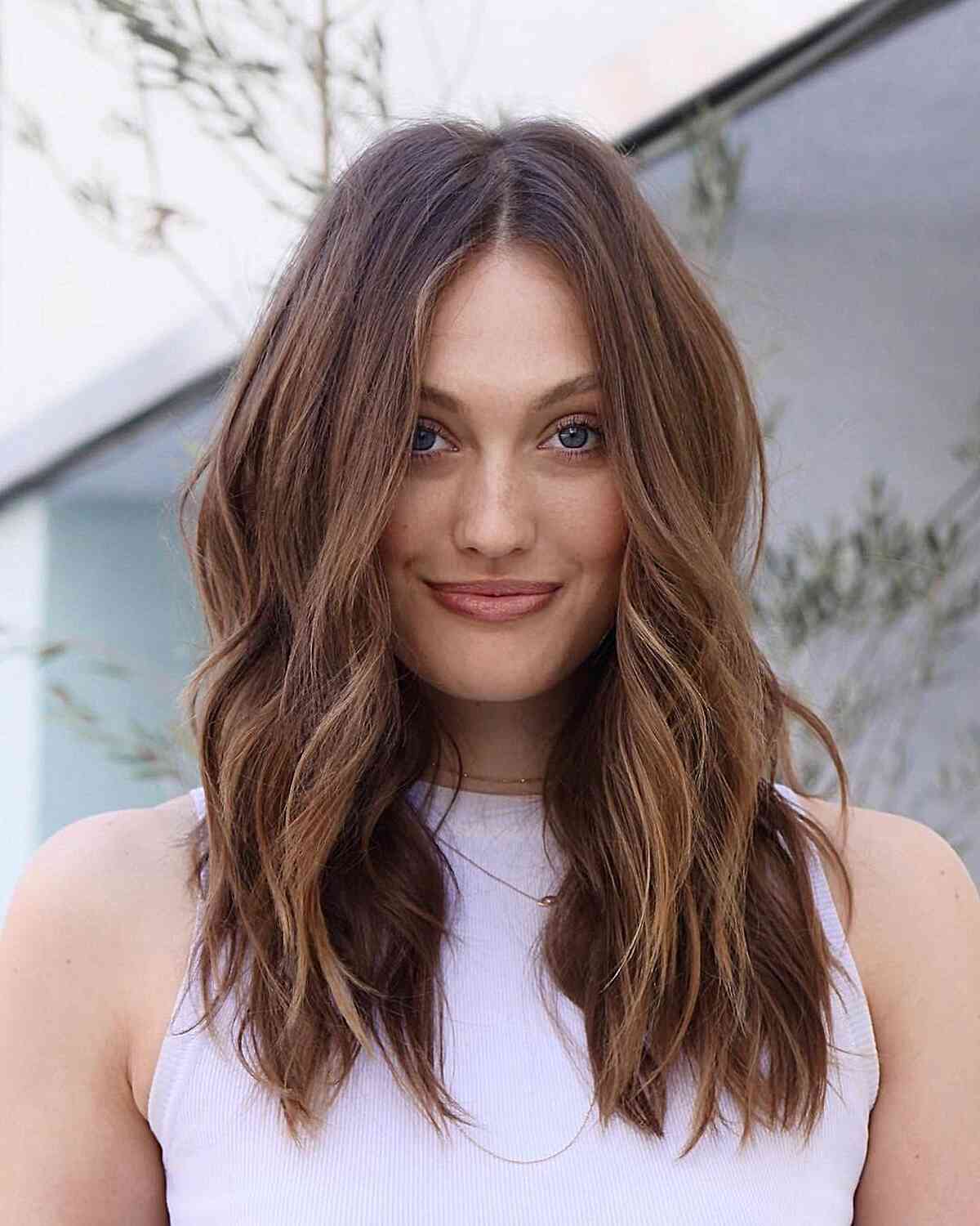 Extended textured locks are an excellent choice when you’re aiming for a subtler transformation. Embracing more choppy layers may seem daunting, but there’s no need for concern. Longer layering provides the ideal solution for enhancing hair’s body and volume. This look also introduces depth to locks with babylights and highlights. It’s particularly flattering for curlier and thicker hair types, although smoothing the hair prior to styling remains essential.