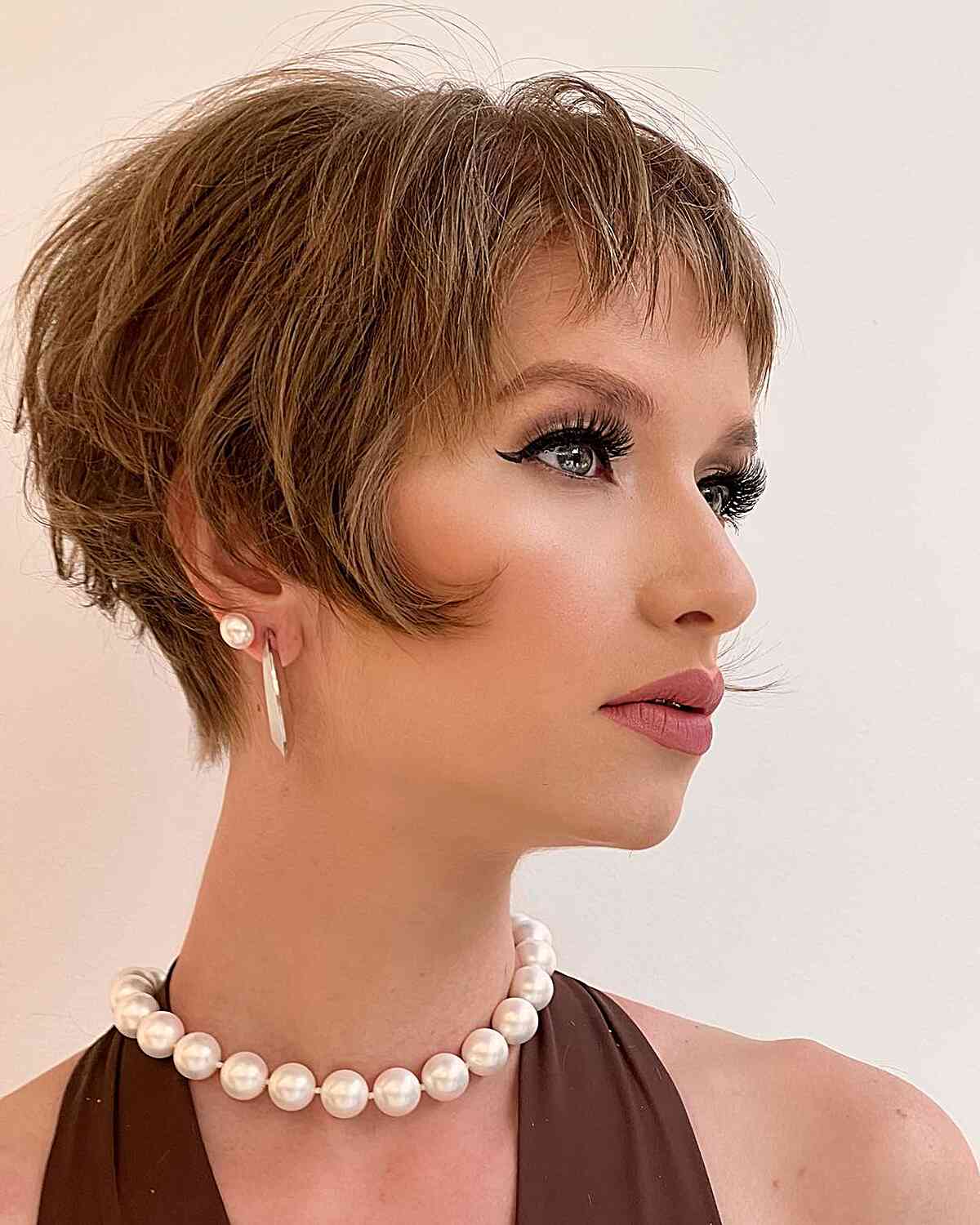 What a delightful textured short shag! Textured short shag haircuts like this one shine when styled with plenty of volume. Adding bangs, if you prefer, is an excellent choice. They provide the overall look with a more youthful vibe. When choosing such short hair, opt for natural-looking makeup to prevent a boyish appearance.