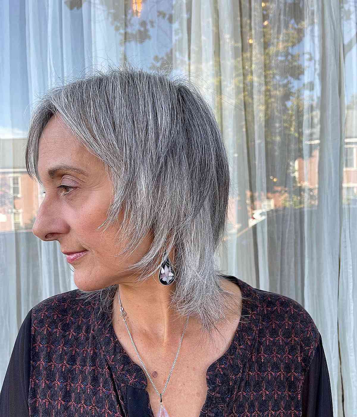 Try out a layered silver chop. Be sure to ask your stylist for plenty of layers to create that shaggy silhouette. Select the ideal length for your face and back that suits you best. A key tip for styling is to keep the volume in check; a sleeker look feels more contemporary.