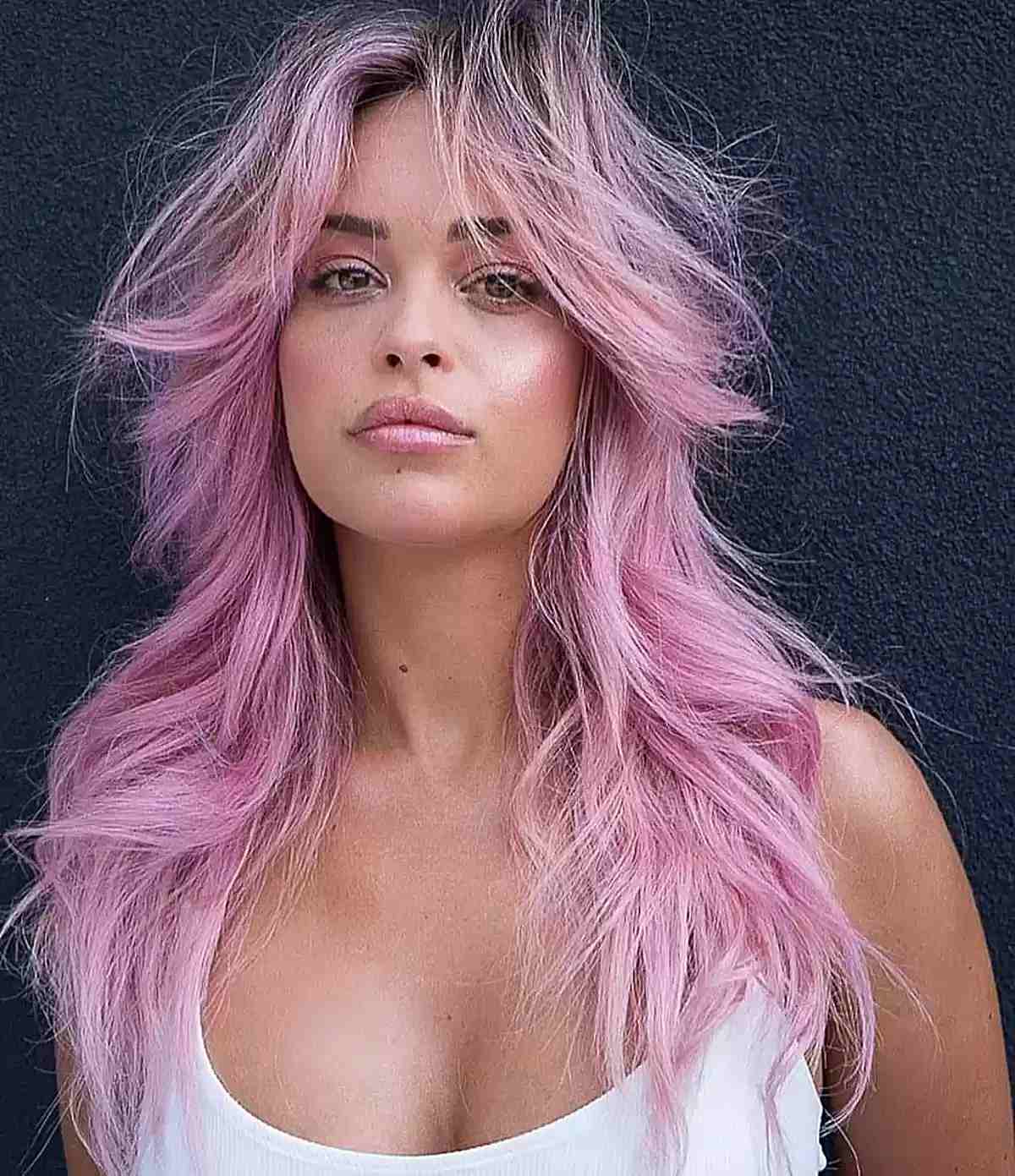 Choppy layers in pink are ideal for women who want to create a striking appearance with their hair. During your next visit, request a splash of lively color for your mid-length messy hair. This can impart a whimsical and spirited aesthetic. The layers enhance volume and texture, resulting in a less polished and more effortless vibe. This style suits women with fine hair looking to introduce some richness to their tresses. To preserve the vibrancy of the pink shade, opt for color-safe shampoo and conditioner.