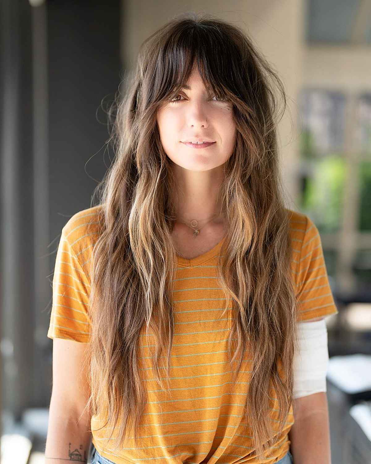 Long haired women looking for a fresh style should consider textured layering. This shaggy, super long example demonstrates how the addition of face-framing layers can transform your whole look. Textured, shaggy, romantic and stylish. This cut is a must-try for anyone with really long hair.