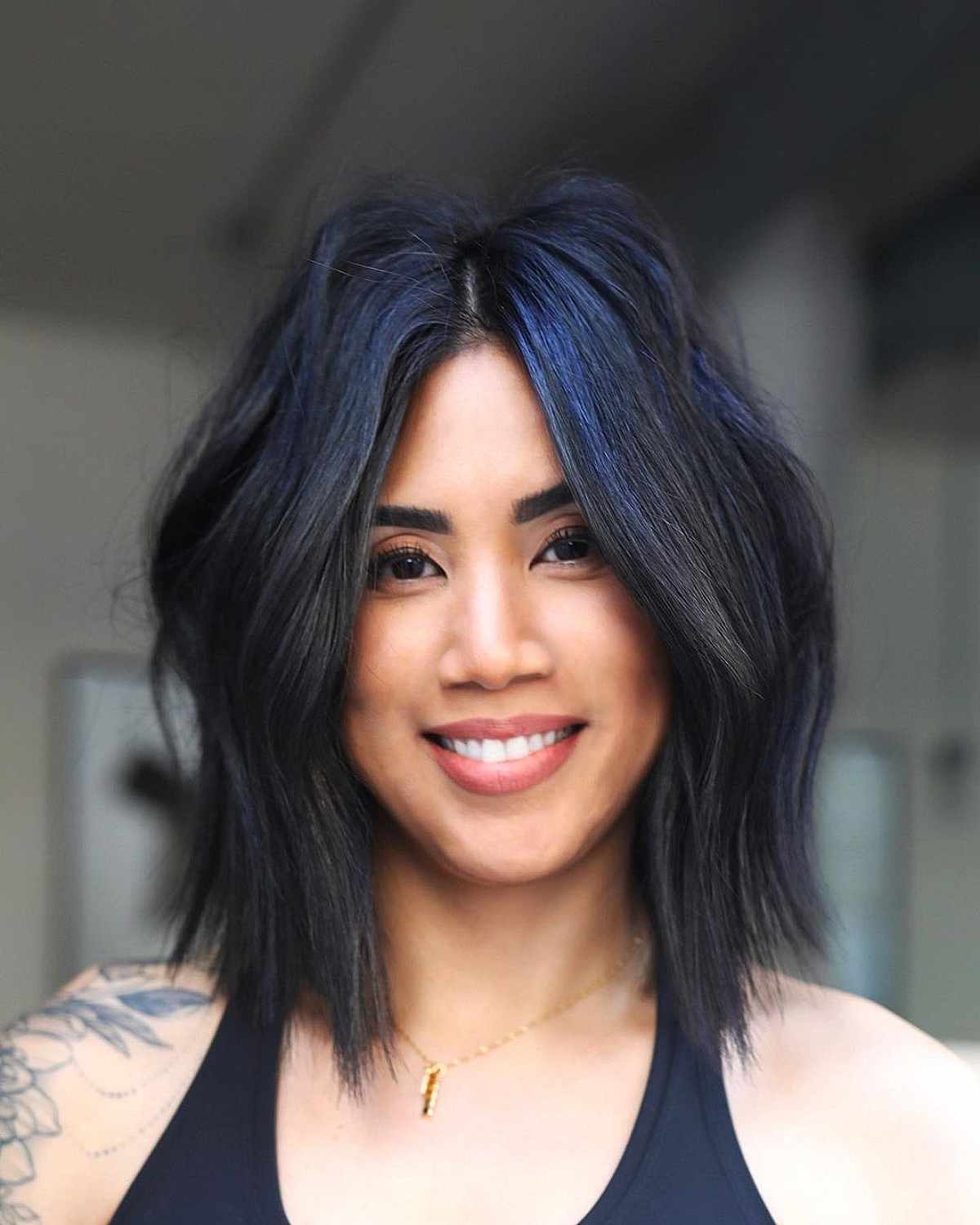 This choppy haircut and shade is perfect for women with thick, robust, and healthy hair. The longer layers are suitable for nearly all women because the front can be tailored to fit individual preferences.