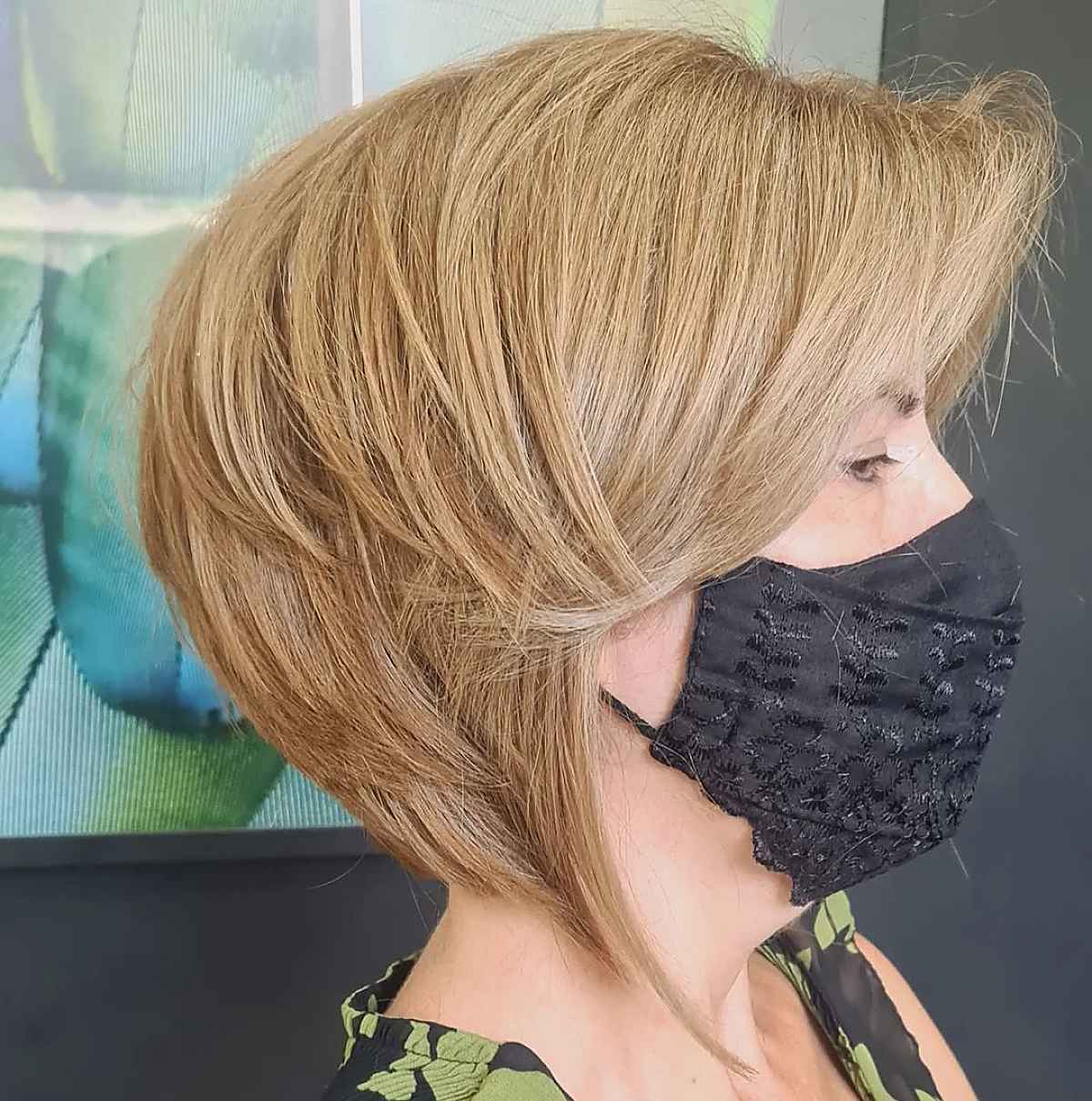 This textured stacked bob with layers and blonde balayage is a contemporary and chic hairstyle that will effortlessly elevate your look. When it comes to stacked bobs, they create a wonderful amount of volume at the back, and the choppy layers introduce movement and texture. The blonde balayage highlights provide dimension and depth to the overall style. This haircut is ideal for those who desire a fashionable and low-maintenance option. The textured stacked bob complements various hair types and face shapes.