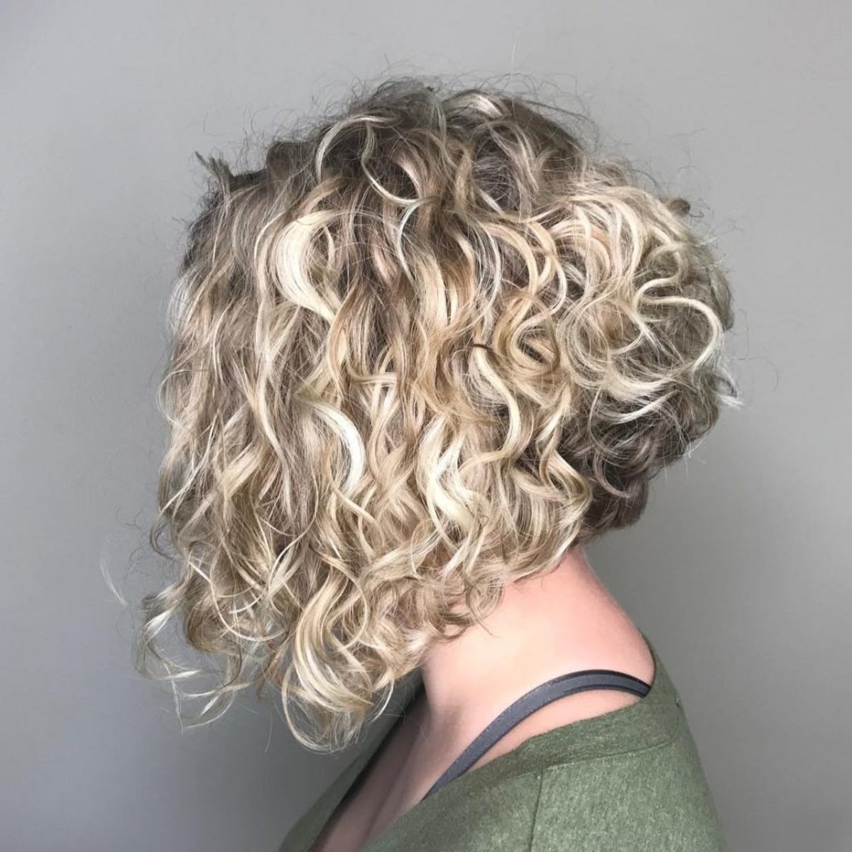 Elevate your look with a chic A-line curly bob that adds depth and movement to your dark-rooted, radiant blonde locks. For a night out, a spritz of sea salt spray will enhance your natural curls and give them a lively texture.