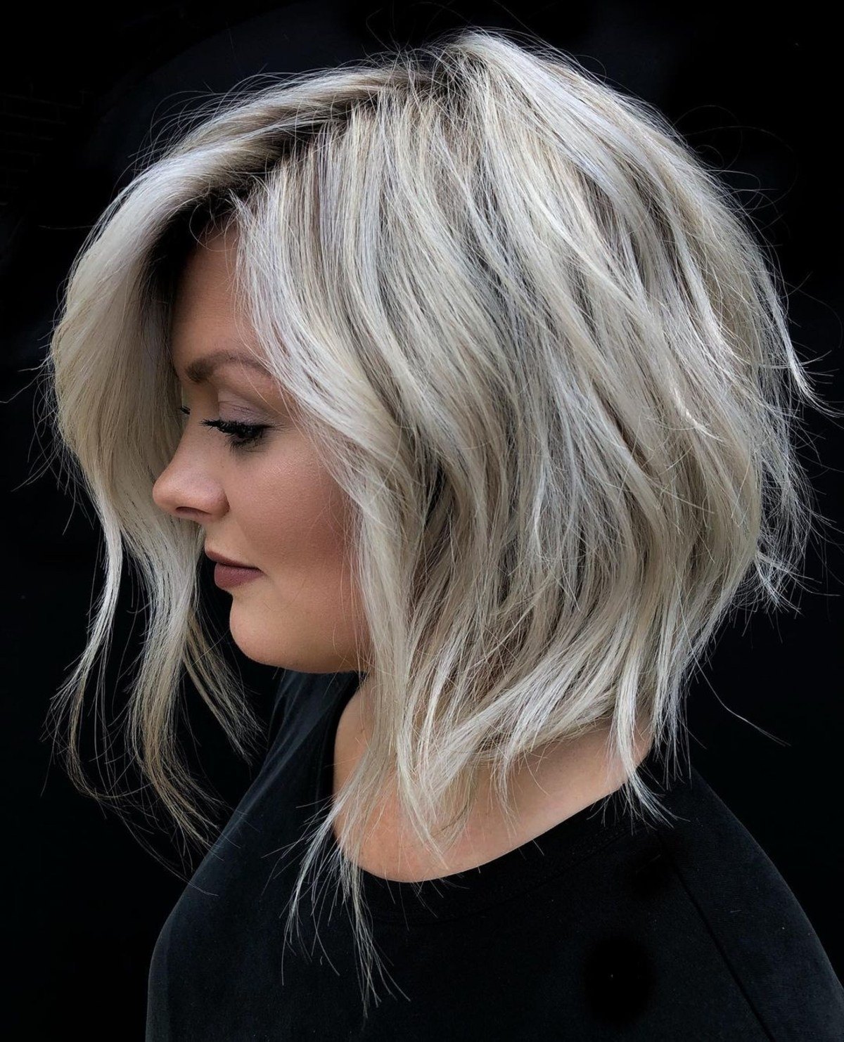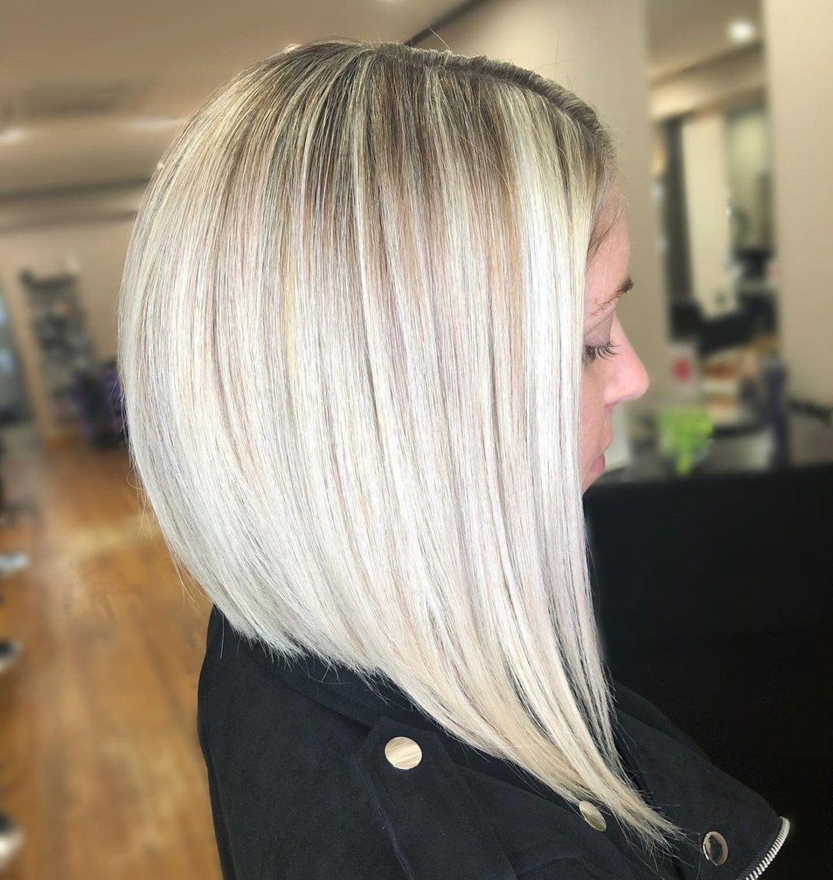 Transform your hairstyling routine, get a fresh cut, and redefine your ash blonde look! If you’re in search of a haircut that stays above your neck, consider this stacked bob. It will enhance the dimension of your hair and appears stunning with added volume and texture. Request a dark root if you’re tired of frequent root touch-ups.