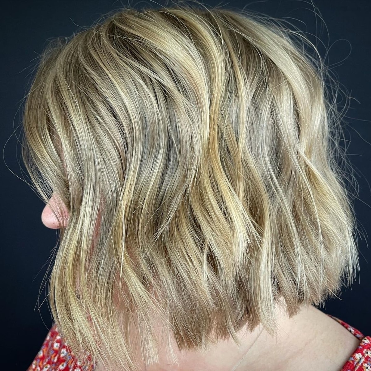 A chic bob is an ideal trendy hairstyle. Tousled looks highlight the depth in blonde shades. Consult your stylist for additional texturizing to achieve this effect.