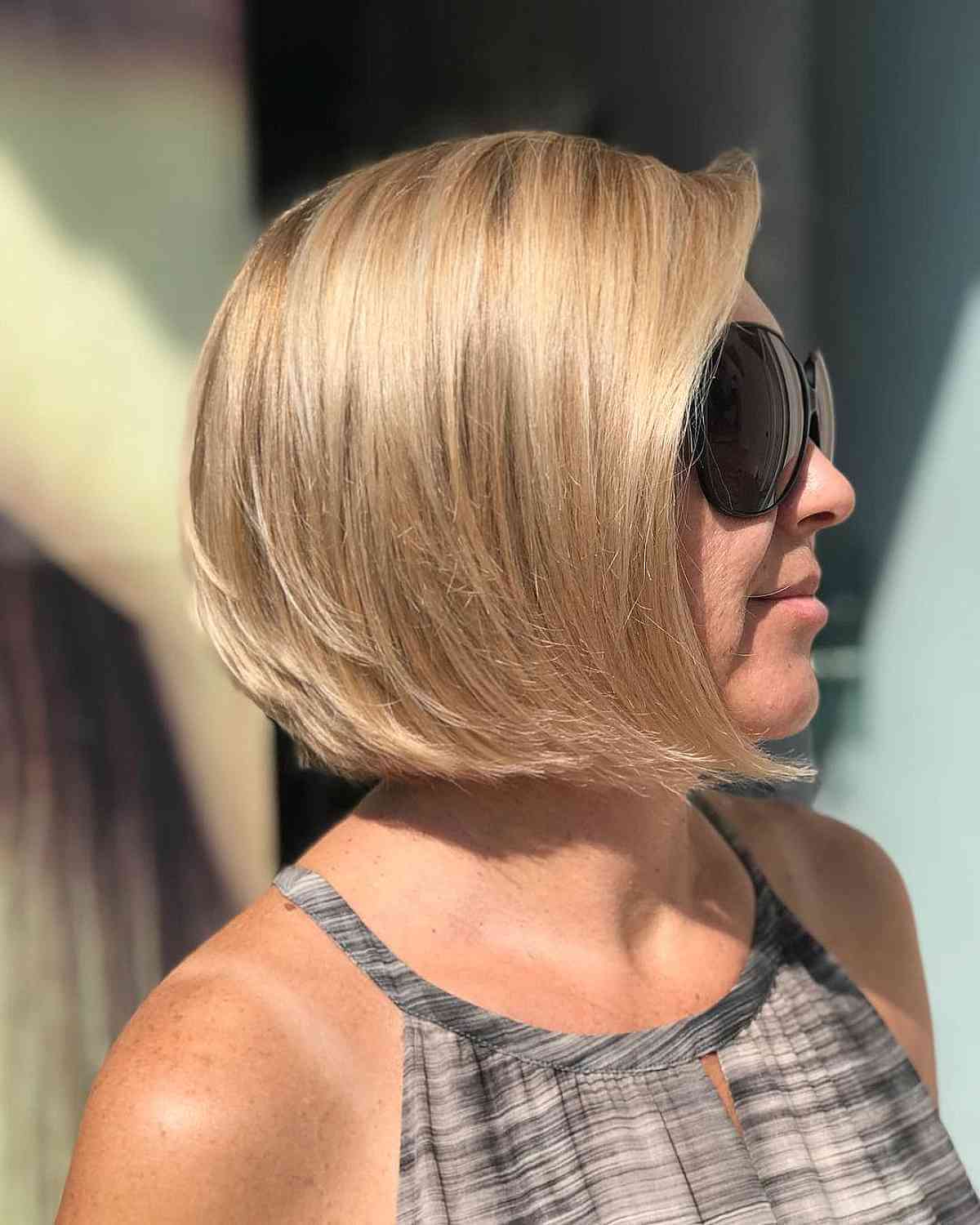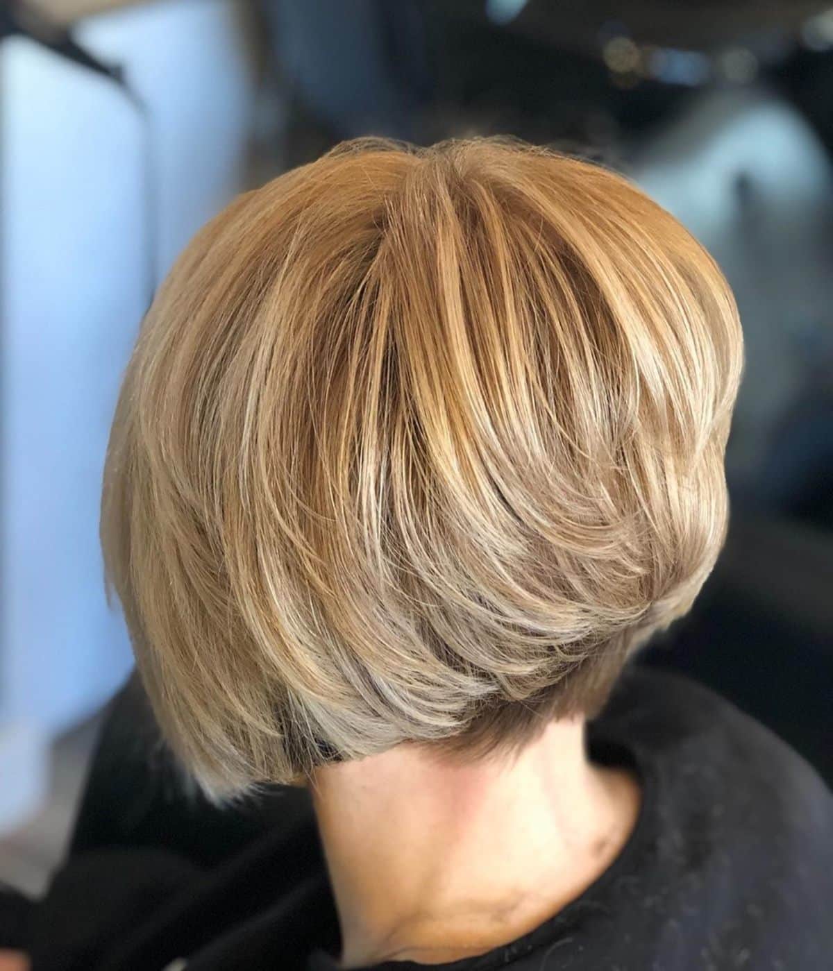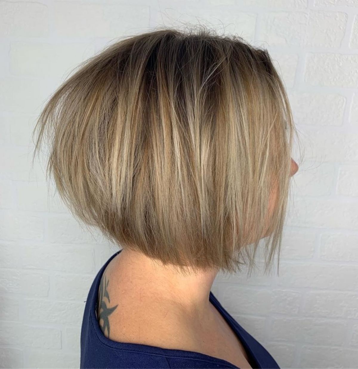 Do you have sleek and straight hair? Are you considering a more vibrant color this time? Here’s the graduated bob, also known as an inverted bob, which appears stunning on a golden blonde shade. Feel free to ask for some disconnected layers at the back for added volume.