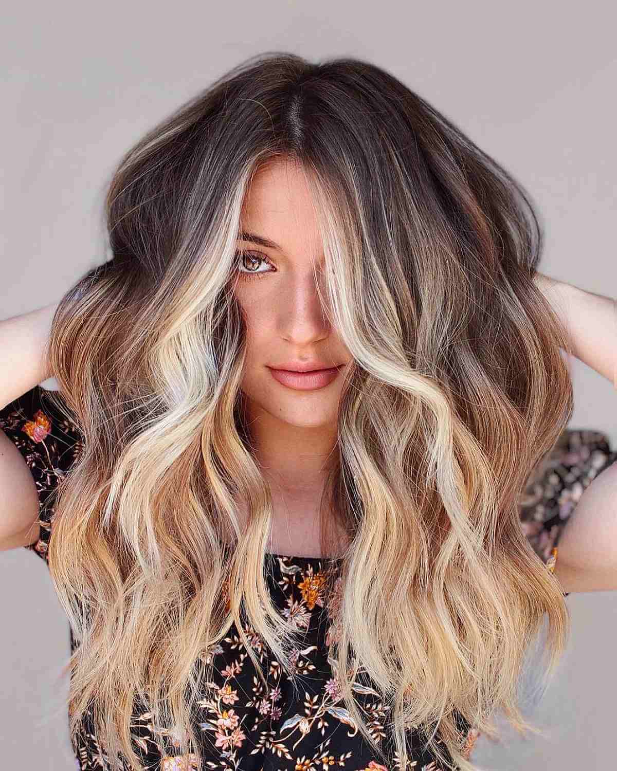 Explore the placement of balayage highlights if you desire a seamless blend with a striking pop of blonde in the front! This hair color offers a rich and glamorous appearance that is low-maintenance. Complete your look with some waves to accentuate the various tones of color.