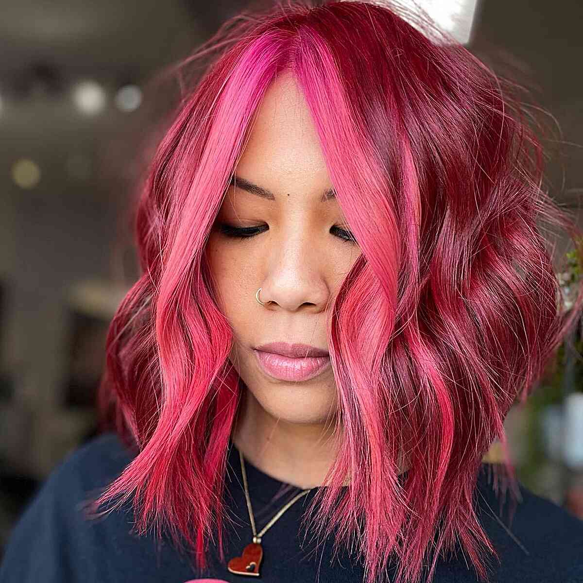 Vibrant Pink Lob with a Luminous Pink Money Piece