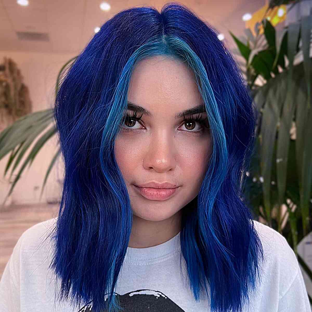 Consider vivid blue with a soft blue money piece if you want to make a statement with your hair. This striking blend is sure to turn heads and showcase your daring personality. I recommend Pulp Riot’s Barcelona Toning Shampoo and Tokyo Color Protect Conditioner to maintain the vibrancy.