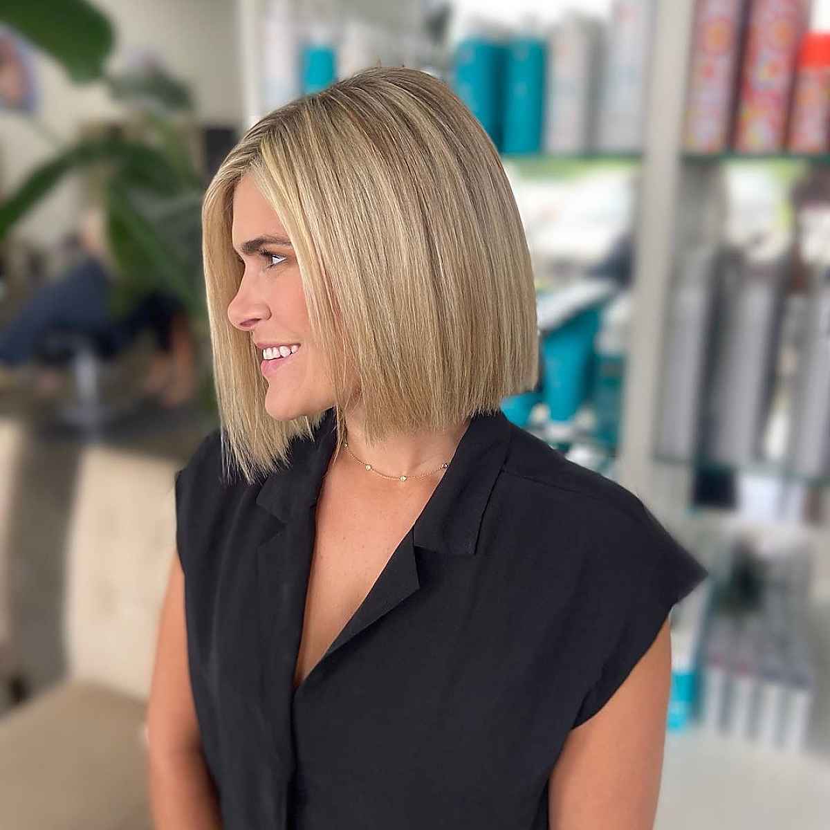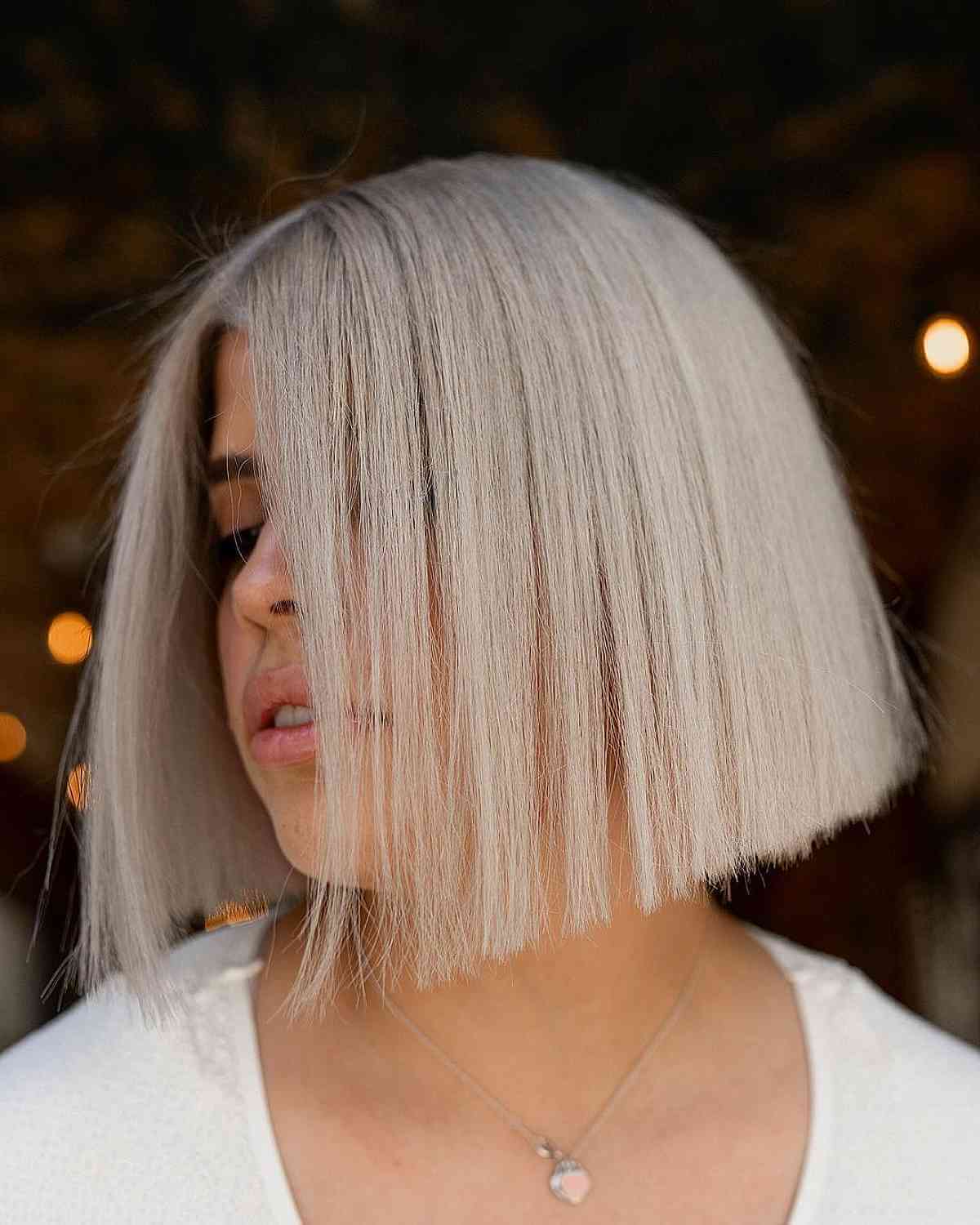 Sleek Short Blunt Bob Without Bangs on Blonde Hair
