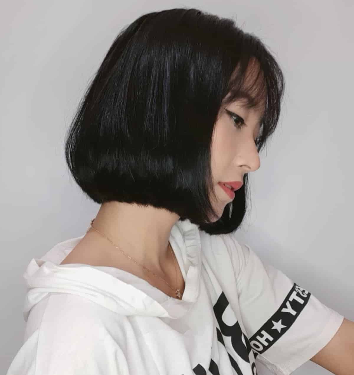 The sleek bob with fine bangs for Asian beauties is ideal for those with straight hair who want something easy to manage. To achieve this look, request your stylist for a straight short sleek bob with minimal texture and gentle bangs.