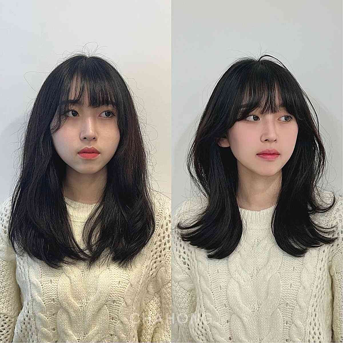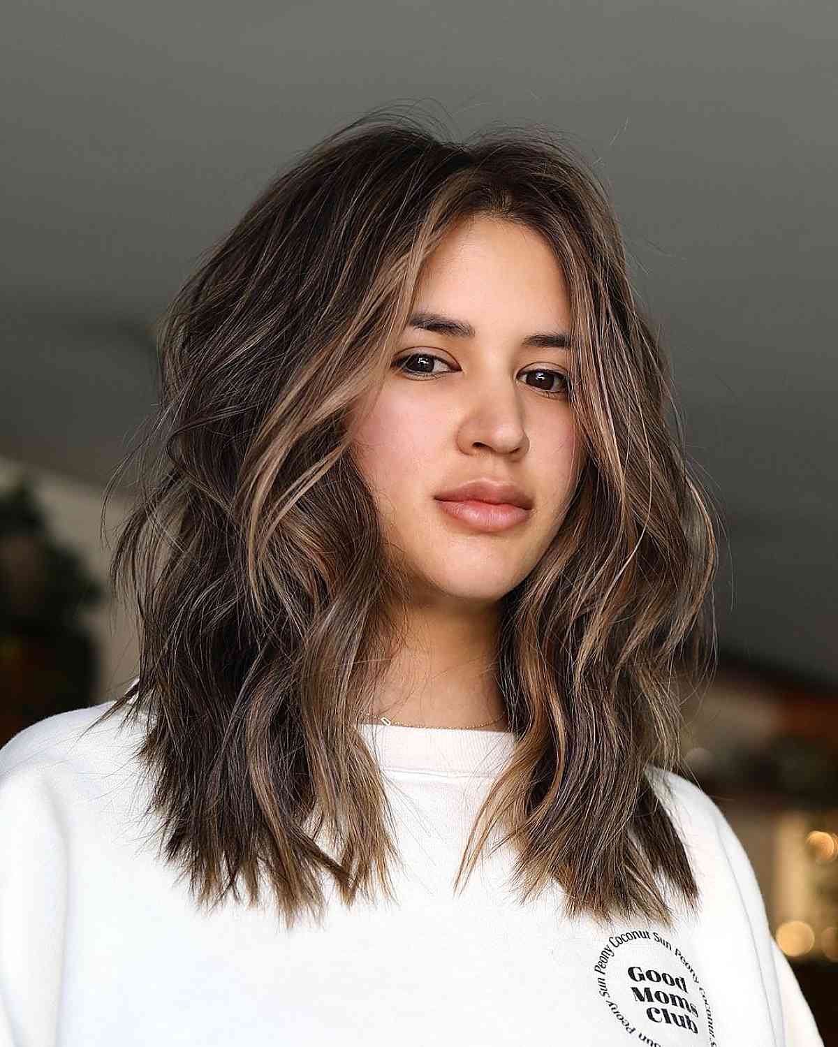 Are you looking for a medium-length haircut with a trendy twist? Textured bangs present a captivating choice. We adore how this style can enhance dimension and contour to the face while maintaining length. Clearly communicate your desired outcome to your stylist for the best results. To enhance definition, think about incorporating subtle highlights or balayage.