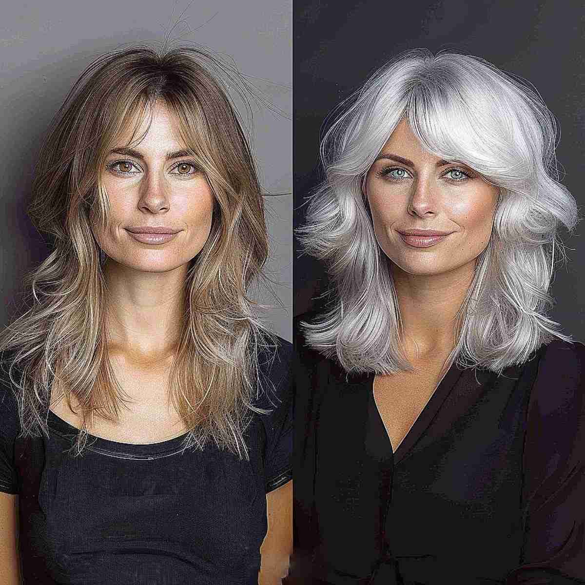 A mid-length hairstyle featuring bangs is a look worth exploring. If you’re seeking a subtle change in your appearance, consider incorporating bangs as they provide a significant transformation with just a slight adjustment. Layering that enhances the bangs can be advantageous. Your stylist can help you determine if bold or soft bangs suit your face shape, and how to style them based on your hair texture.
