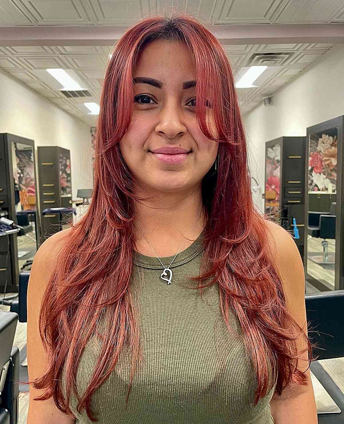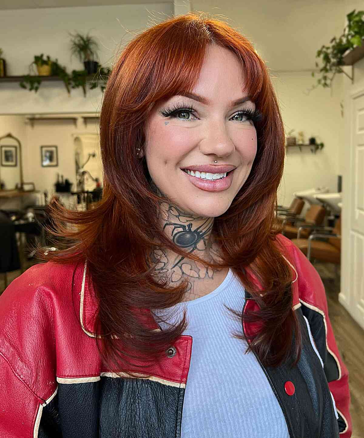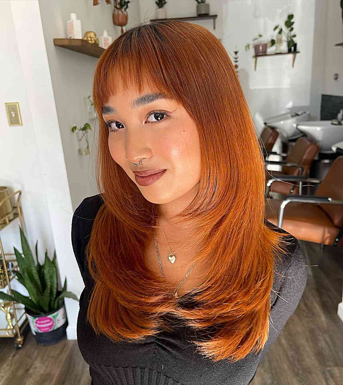 Ready for a change? A copper shag with textured bangs might be just what you need. Shags are very trendy, particularly when combined with a bold copper hue. Choppy, eyebrow-grazing bangs that taper down to your cheekbones beautifully accentuate your facial angles and brow structure. Speak with your stylist to discover a copper shade that complements your skin tone.