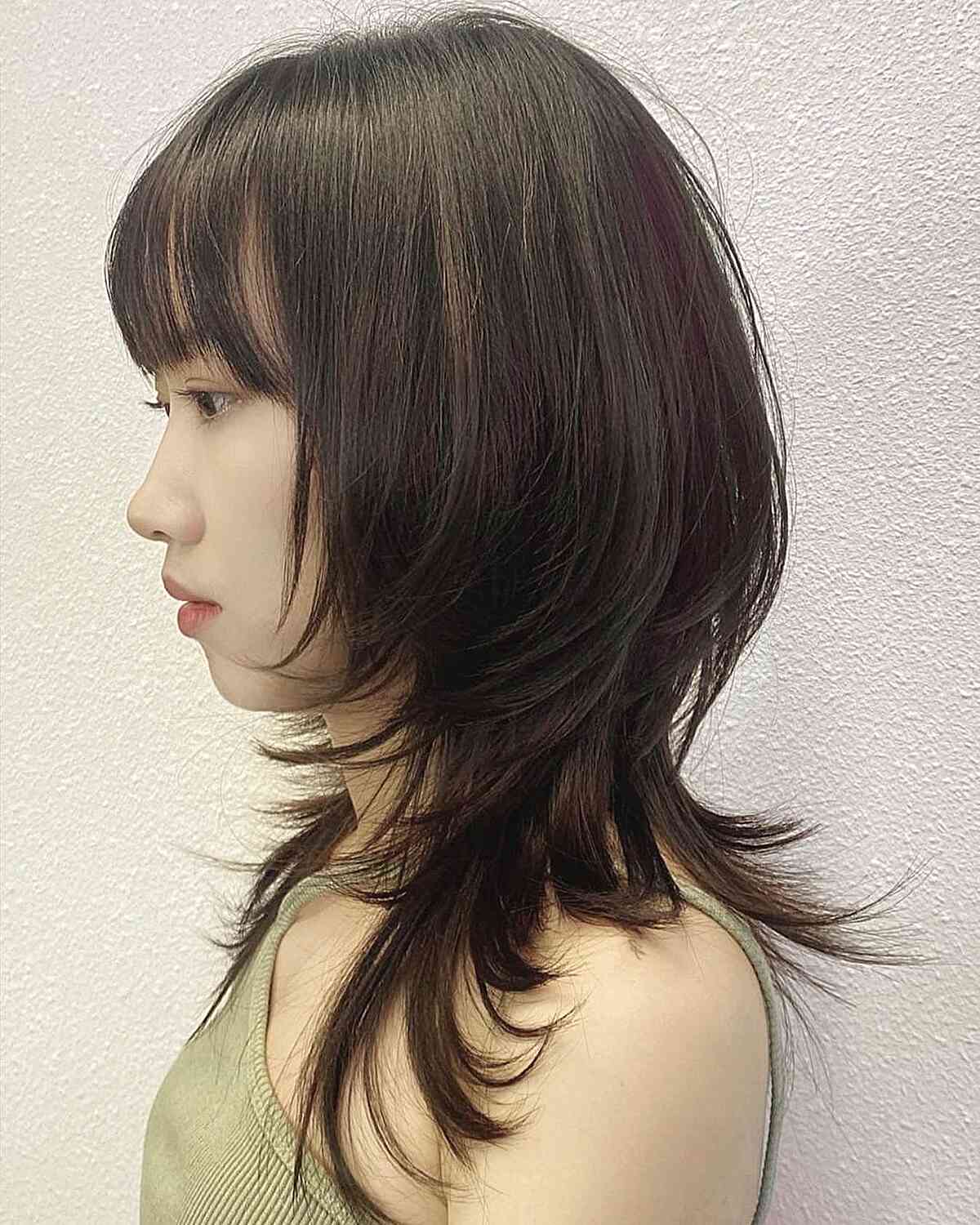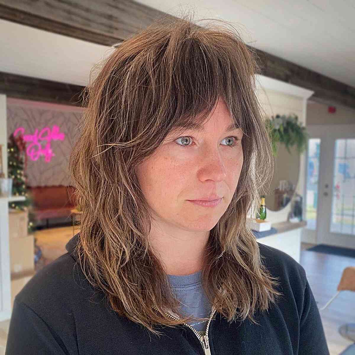#36: Chocolatey Mid-Length Shaggy Mullet Featuring Micro Bangs