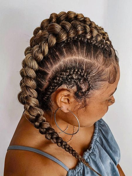 I’d suggest these Goddess braids with highlights of blonde to women of every age and lifestyle. It looks fabulous for any event. The distinctiveness of this particular braid makes it fitting for classy and elegant occasions.