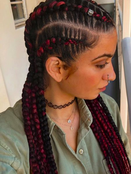#56 Four Elegant Goddess Braids with Ruby Highlights