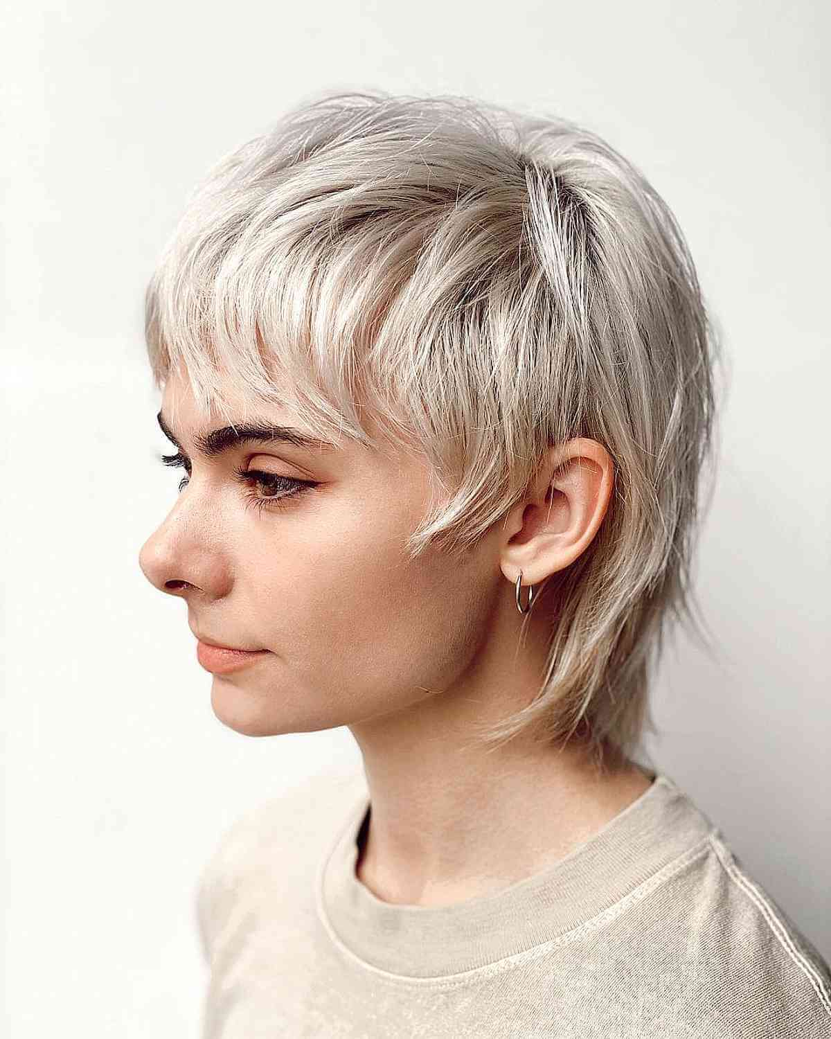A bold shaggy pixie mullet is soft, feminine, and incredibly simple to style. Anticipate more regular trips to the salon to maintain your pixie mullet shaggy hairstyle. A shorter textured bang enhances softness and draws attention to the eyes.