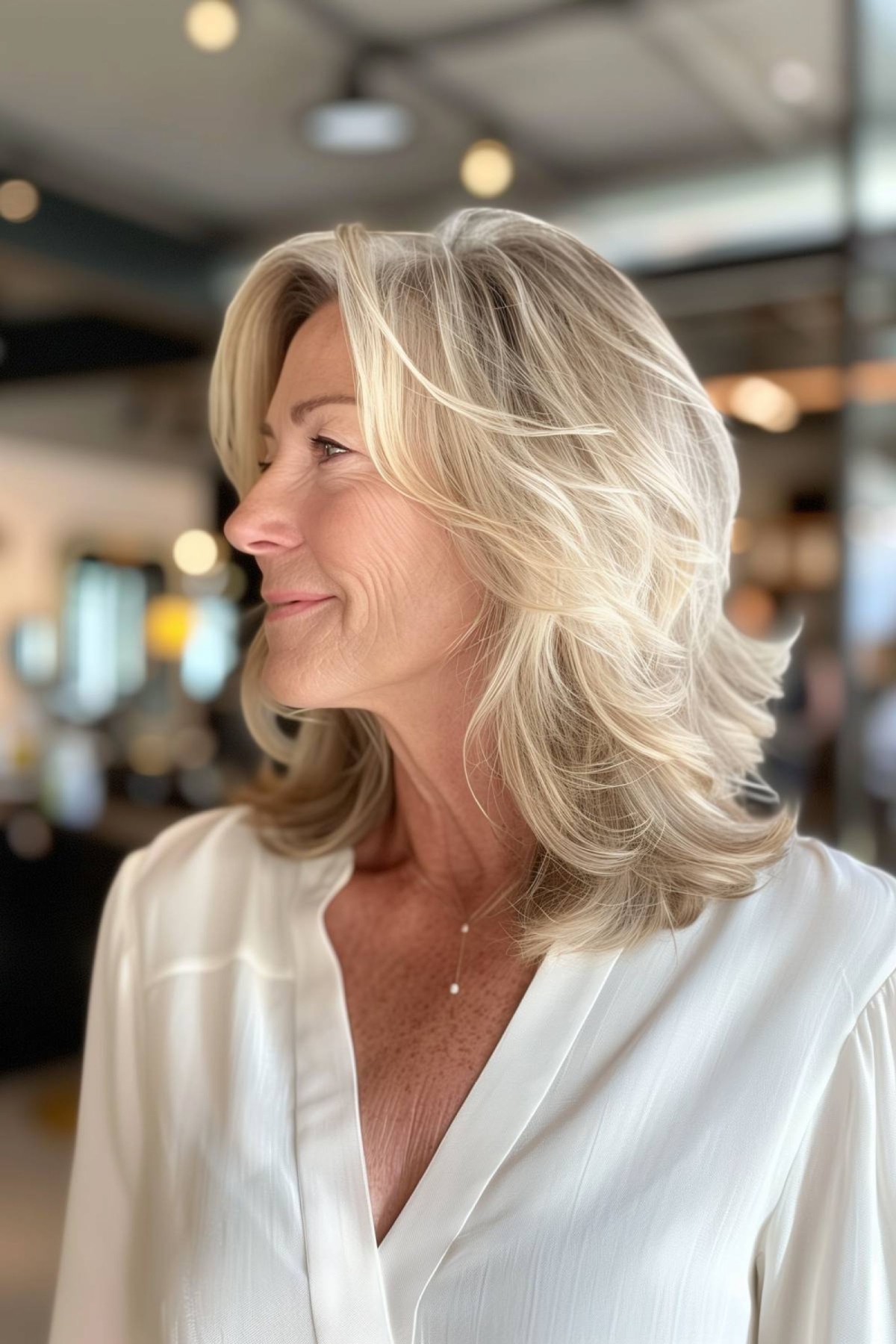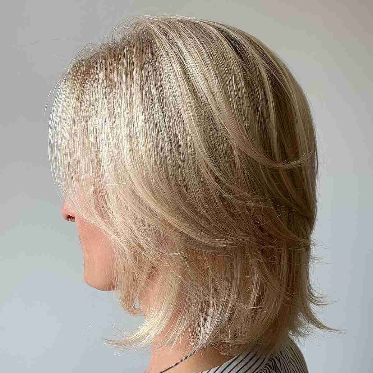 Chic Mid-Length Blonde Hair with Layered Feathered Streaks