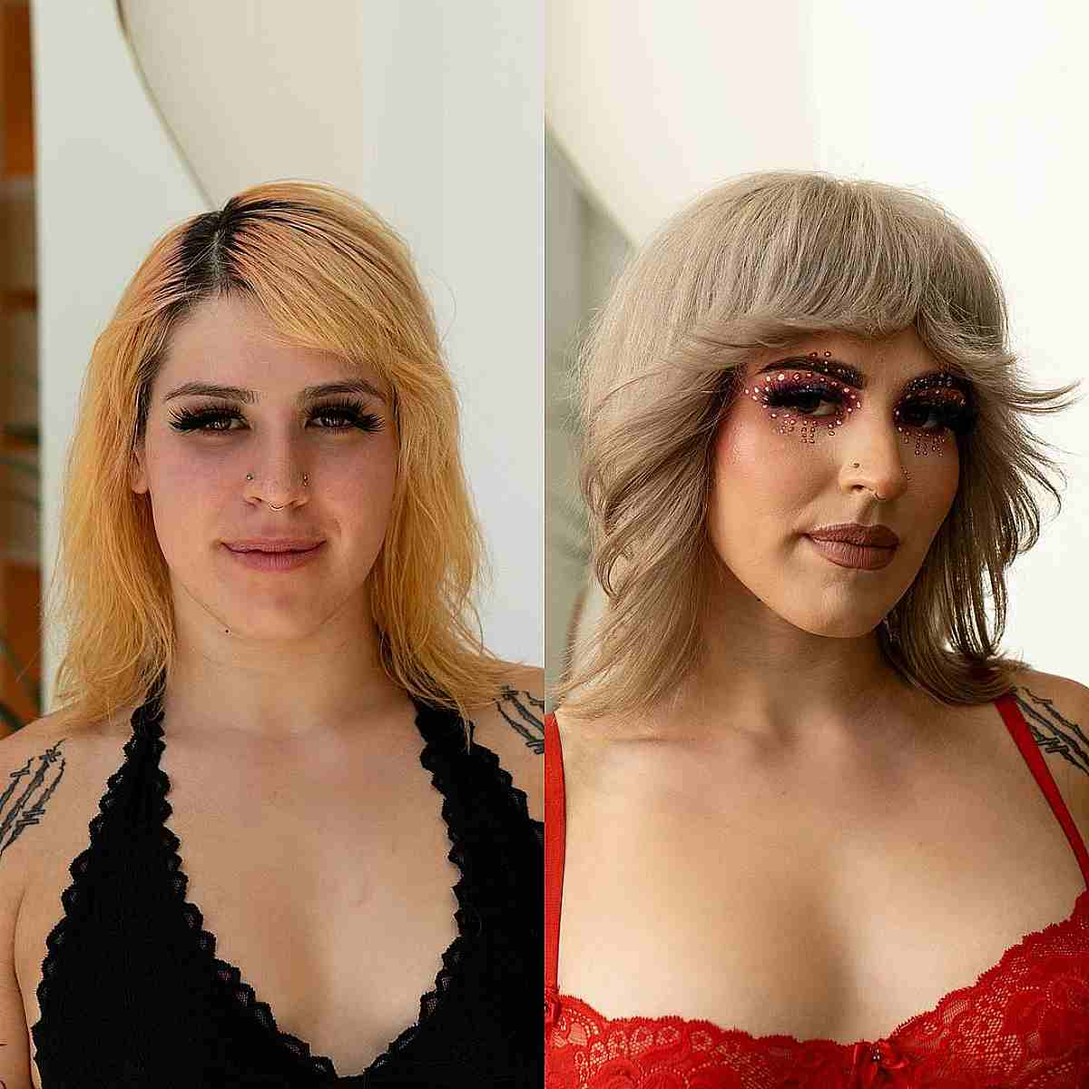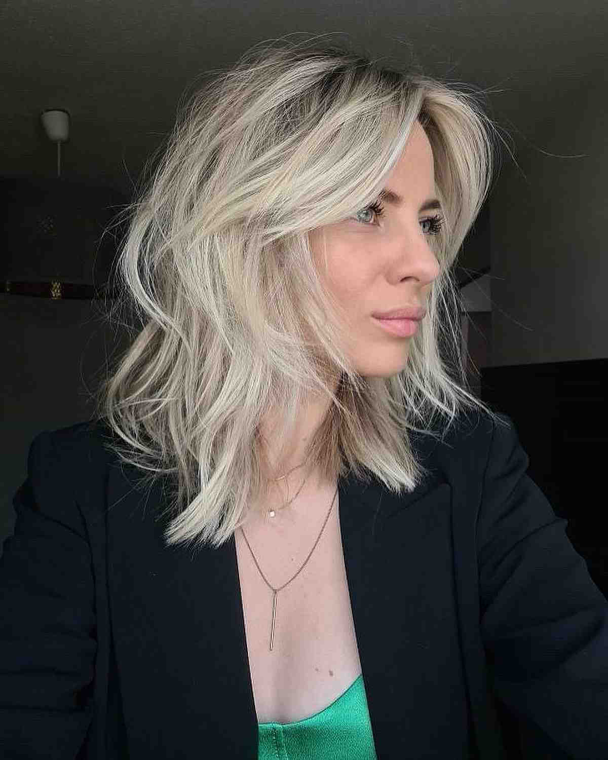 If you’re searching for a hairstyle that will enhance your features, consider an ash-blonde shag with outward flipped bangs. The shag cut, which is among the trendiest styles at the moment, can be perfect for you. You can style it to flip away from your face using a blow-dryer brush like the Dyson Airwrap.