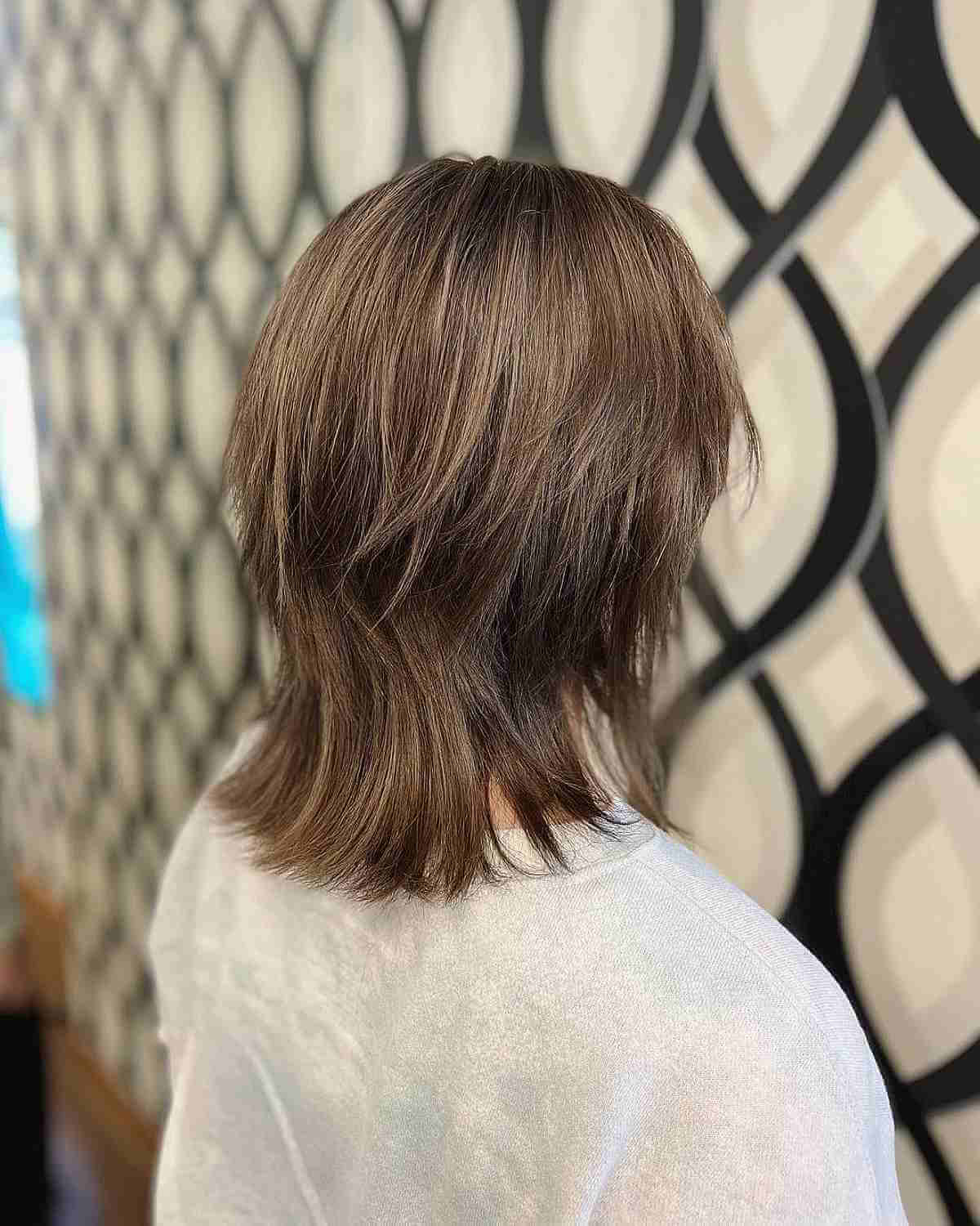 Choose a stylish mullet with textured layers and fringe, and you’ll be bold and beautiful. A fresh haircut will make you feel unique and prepared for anything. I utilize a distinct contrast between the upper layers and the length to bring this shape to life. The short upper layers lighten the weight to create the shaggy fringe and lower part. If your hair type is fine, this style will complement it perfectly.