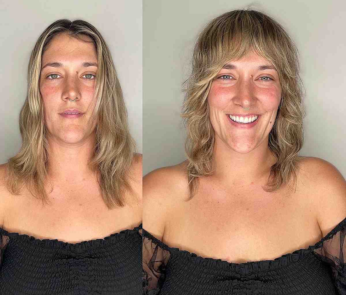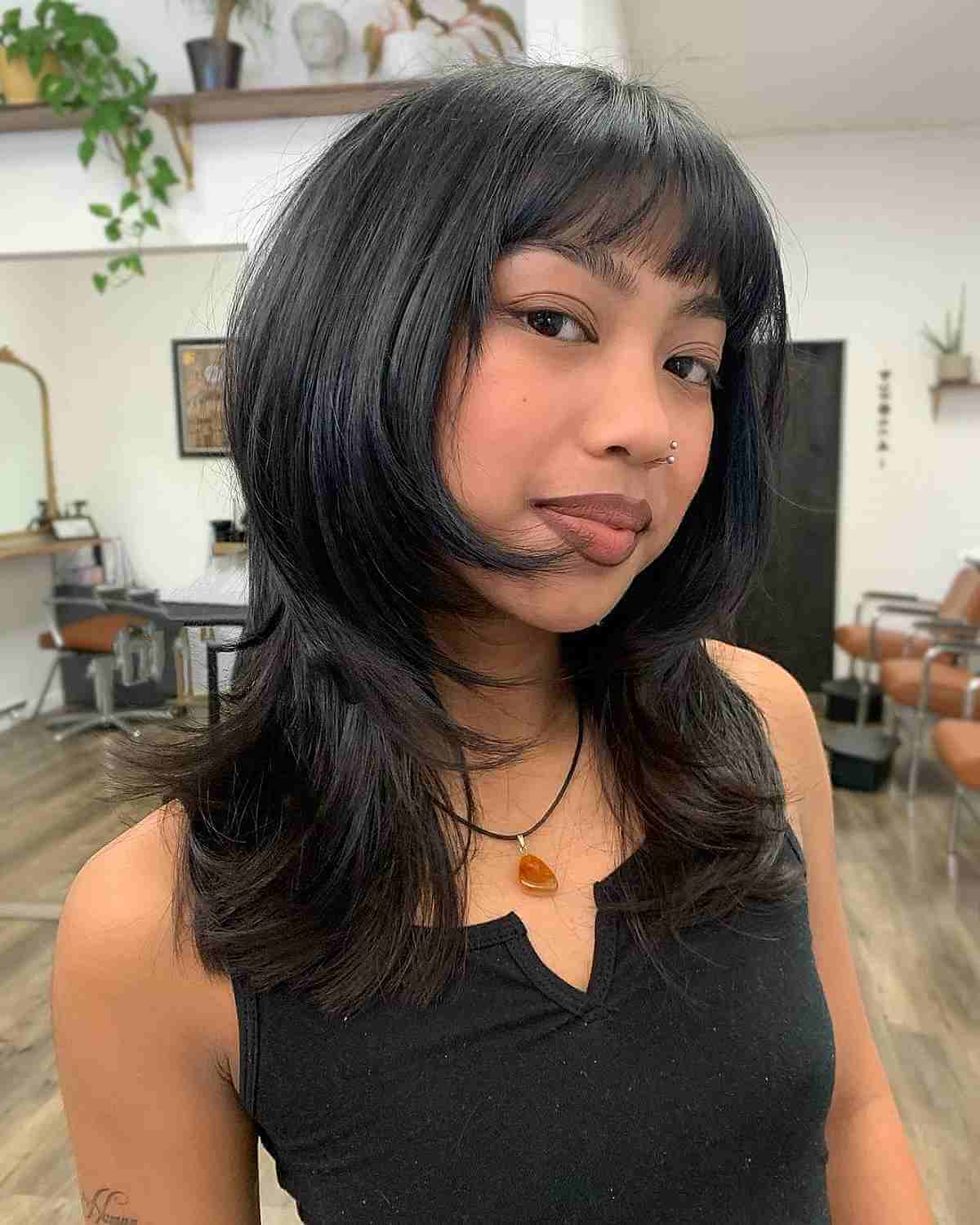 Stylish Face-Framing Bangs for Mid-Length Layered Hair